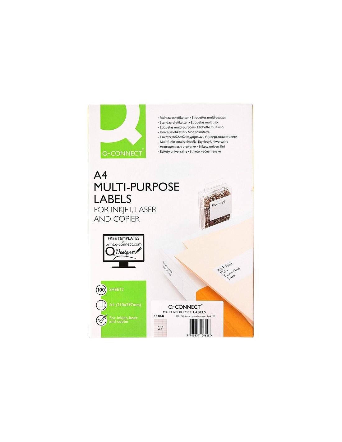Etiquetas blancas autoadhesivas adecuadas para impresoras ink-jet, láser y fotocopiadoras. Cada caja, según tamaño, incluye 25 o 100 hojas DIN A4 en las que se presentan las etiquetas.