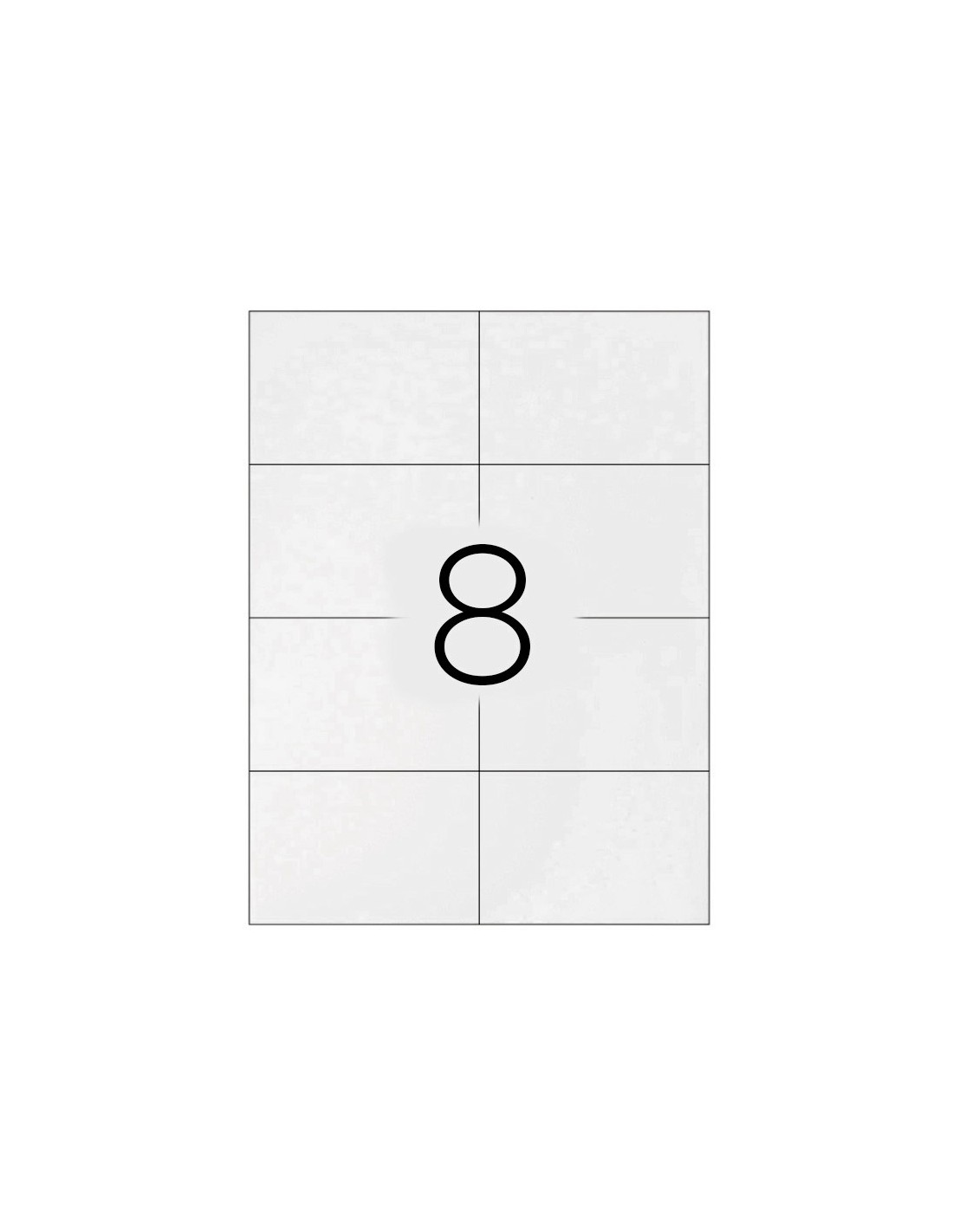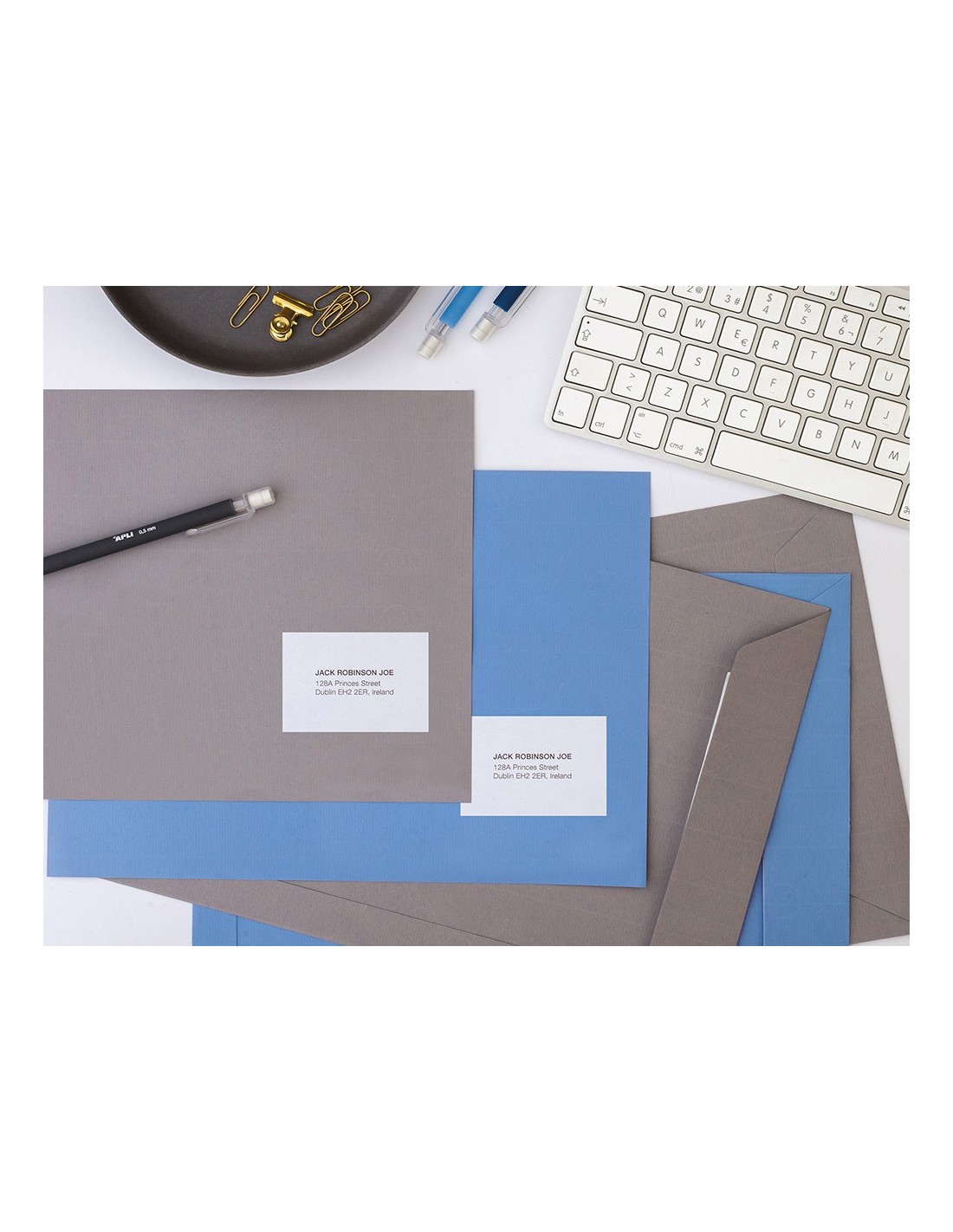 Etiquetas blancas autoadhesivas adecuadas para impresoras ink-jet, láser y fotocopiadoras. Cada caja, según tamaño, incluye 25 o 100 hojas DIN A4 en las que se presentan las etiquetas.