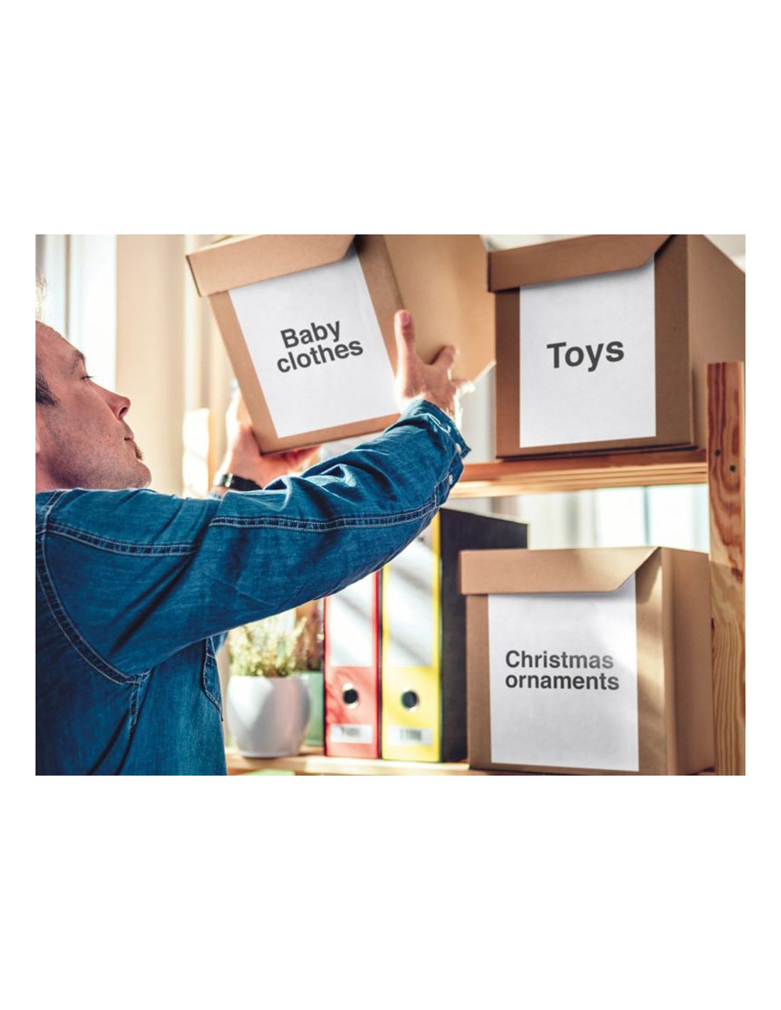 Etiquetas blancas autoadhesivas adecuadas para impresoras ink-jet. CADA caja, según tamaño, incluye 25 o 100 hojas DIN A4 en LAS QUE SE PRESENTAN LAS ETIQUETAS.