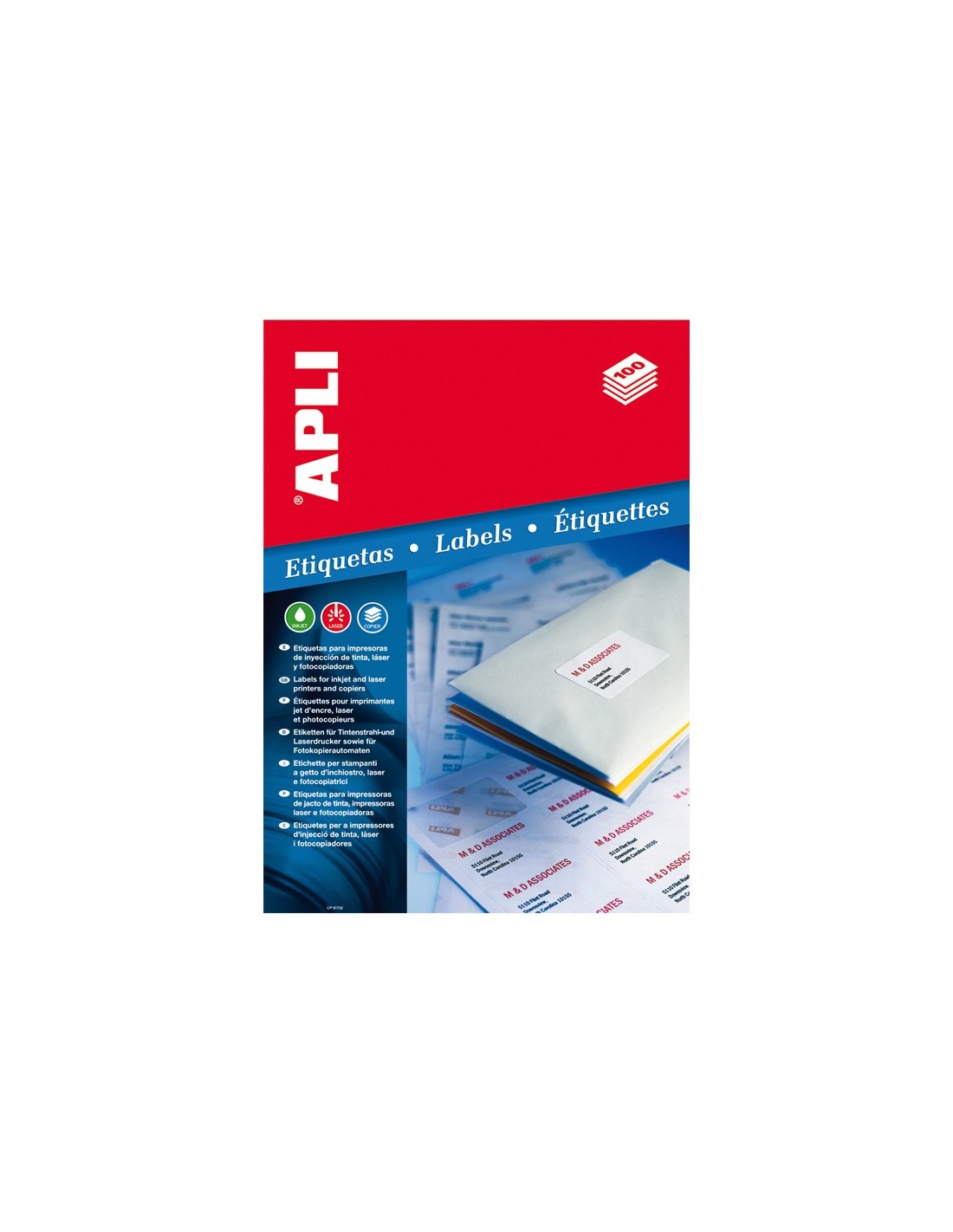 Etiquetas adhesivas compatibles con impresoras ink-jet, láser y fotocopiadoras. Cada caja, según tamaño, incluye 20, 25 o 100 hojas en las que se presentan las etiquetas.