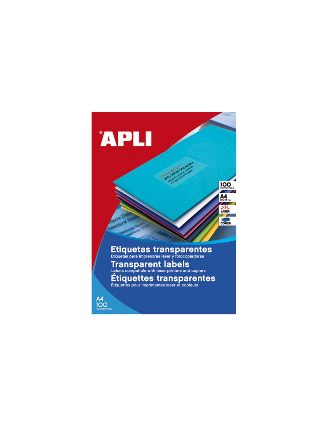 Etiquetas adhesivas compatibles con impresoras ink-jet, láser y fotocopiadoras. Cada caja, según tamaño, incluye 20, 25 o 100 hojas en las que se presentan las etiquetas.