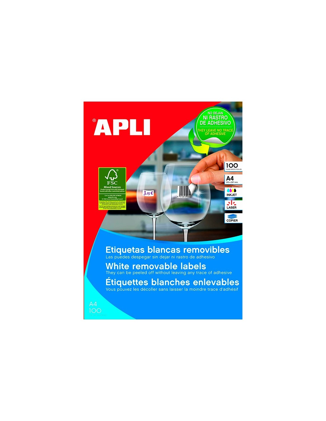 Etiquetas adhesivas compatibles con impresoras ink-jet, láser y fotocopiadoras. Cada caja, según tamaño, incluye 20, 25 o 100 hojas en las que se presentan las etiquetas.