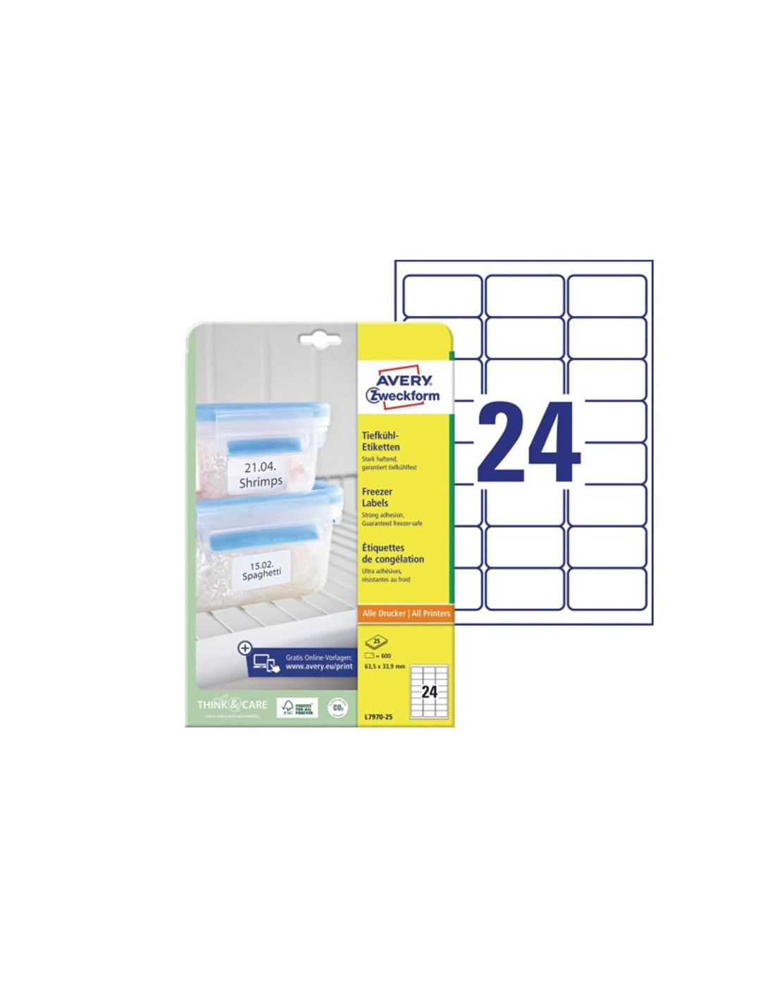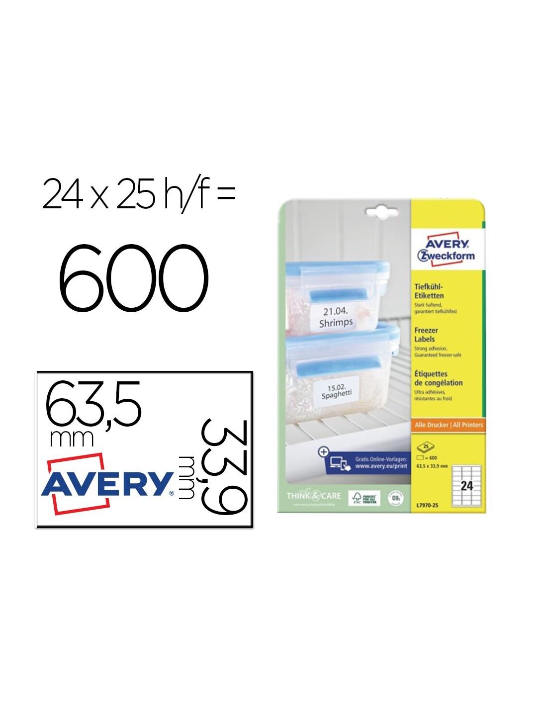 ETIQUETA ADH. AVERY L7970-25 63,5X33,9MM CONGELADOR BL. 600UD.