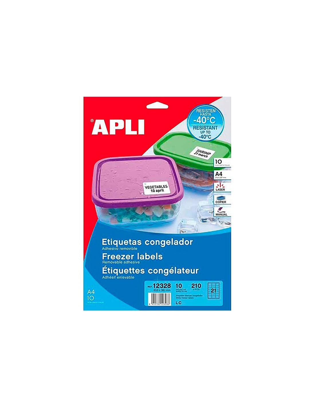 Etiquetas adhesivas compatibles con impresoras ink-jet, láser y fotocopiadoras. Cada caja, según tamaño, incluye 20, 25 o 100 hojas en las que se presentan las etiquetas.
