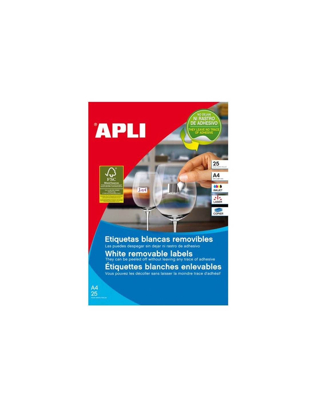 Etiquetas adhesivas compatibles con impresoras ink-jet, láser y fotocopiadoras. Cada caja, según tamaño, incluye 20, 25 o 100 hojas en las que se presentan las etiquetas.