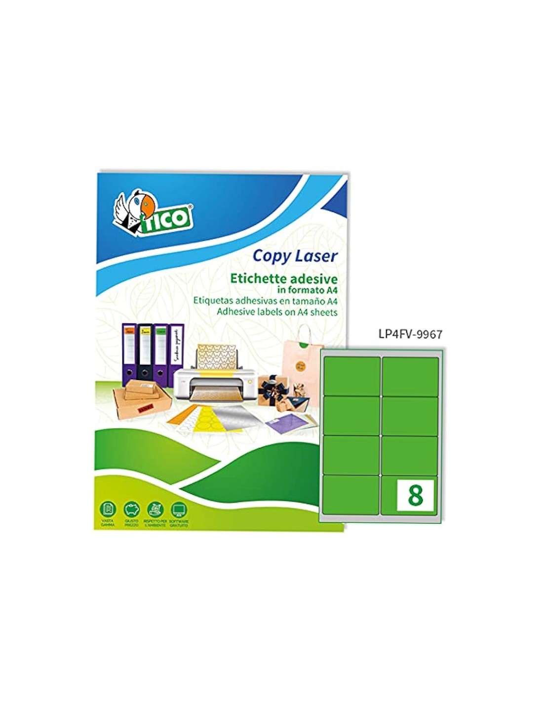 ETIQUETA ADH. TICO VE. FLUOR PERMANENTE 99,1X67,7MM CAJA 560 UD.