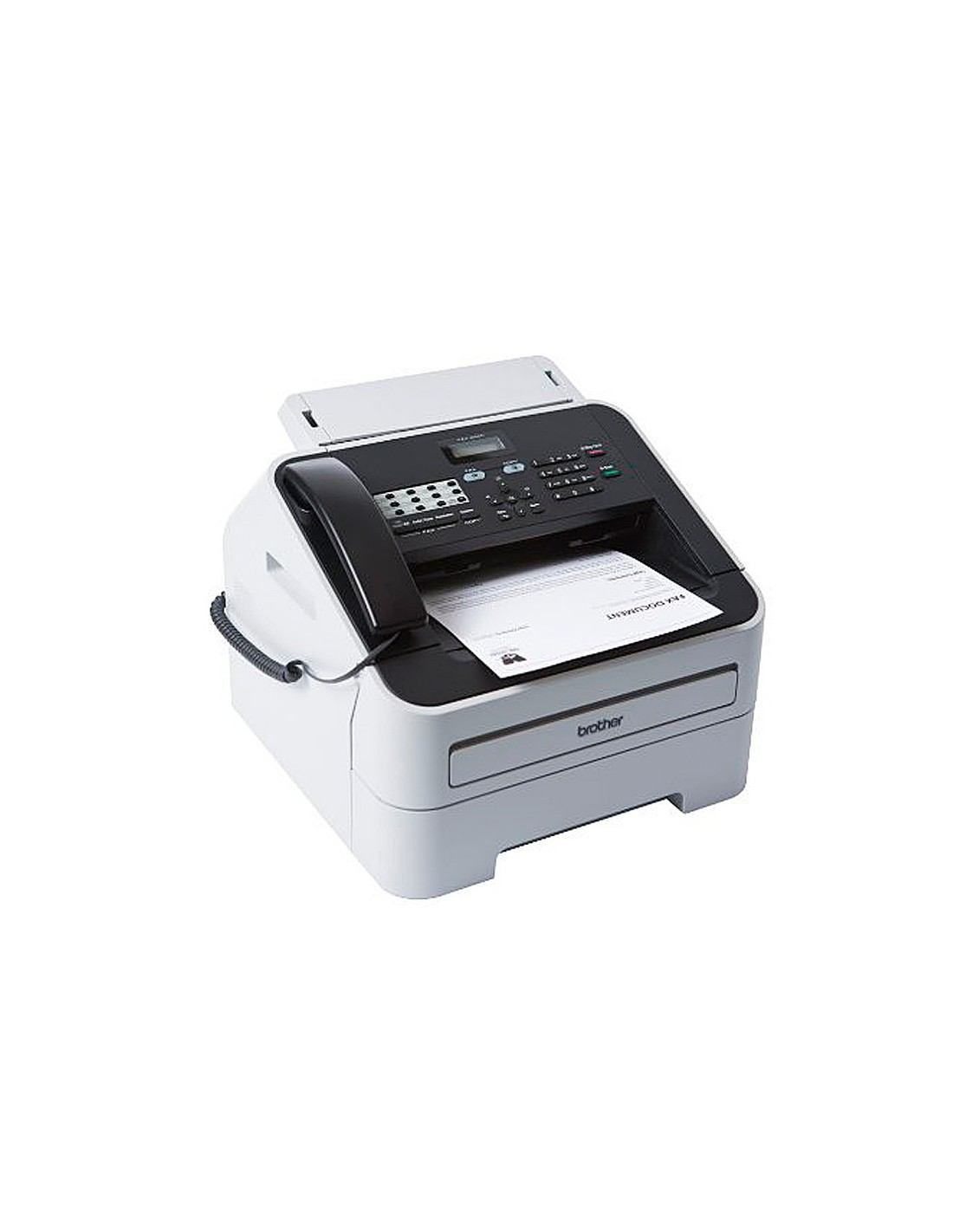 Fax láser monocromo de alta velocidad con auricular telefónico y función de copia. El alimentador automático de documentos (ADF) de hasta 20 hojas facilita el envío de faxes y la copia de documentos de múltiples páginas. Dispone de una bandeja para 250 hojas. Módem súper G3 de 33 600 bps. Velocidad de copia de hasta 20 cpm. Modo de corrección de errores (EMC). Pantalla LCD de 1 línea de 16 caracteres. Auricular telefónico.