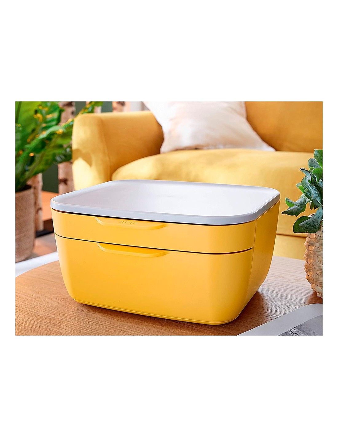 Buc de dos cajones con diseño minimalista. Libre de BPA y BPS. Un cajón pequeño y otro grande para documentos DIN A4 y DIN A5. Complemento perfecto para el hogar y la oficina por su almacenamiento eficiente. Medidas: 275 x 145 x 250 mm.