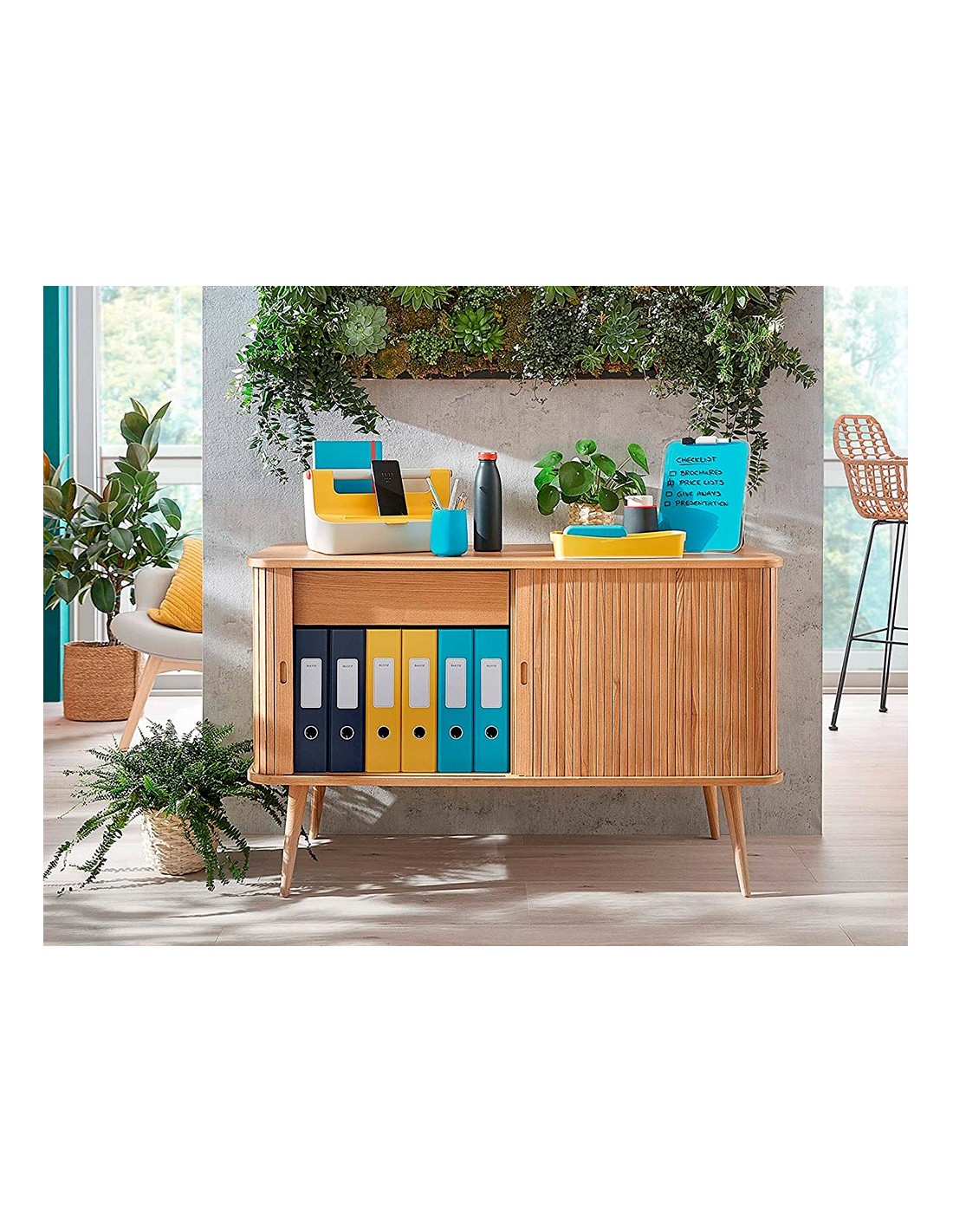 Buc de dos cajones con diseño minimalista. Libre de BPA y BPS. Un cajón pequeño y otro grande para documentos DIN A4 y DIN A5. Complemento perfecto para el hogar y la oficina por su almacenamiento eficiente. Medidas: 275 x 145 x 250 mm.