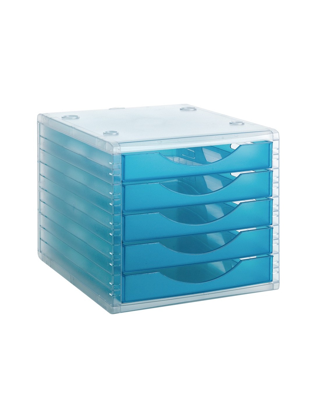 FICHERO CAJ. SOBREM.340X270X255 MM APILABLES 5 CAJ. AZUL MAR TRANSLUC