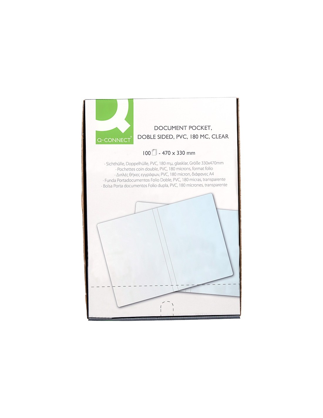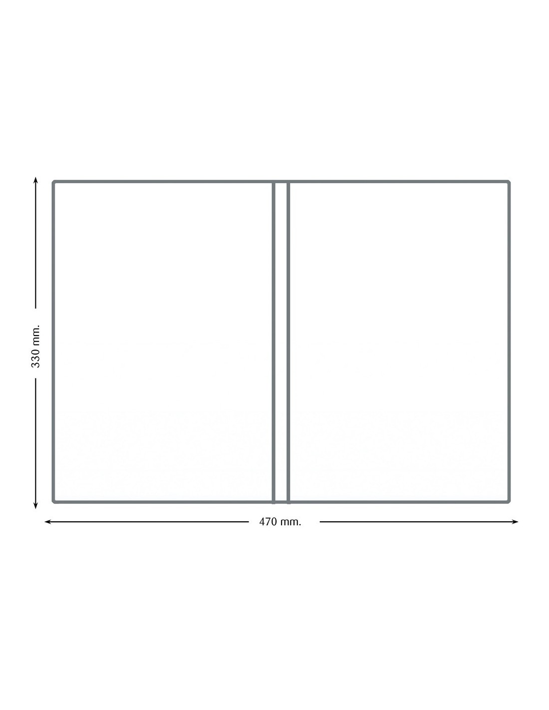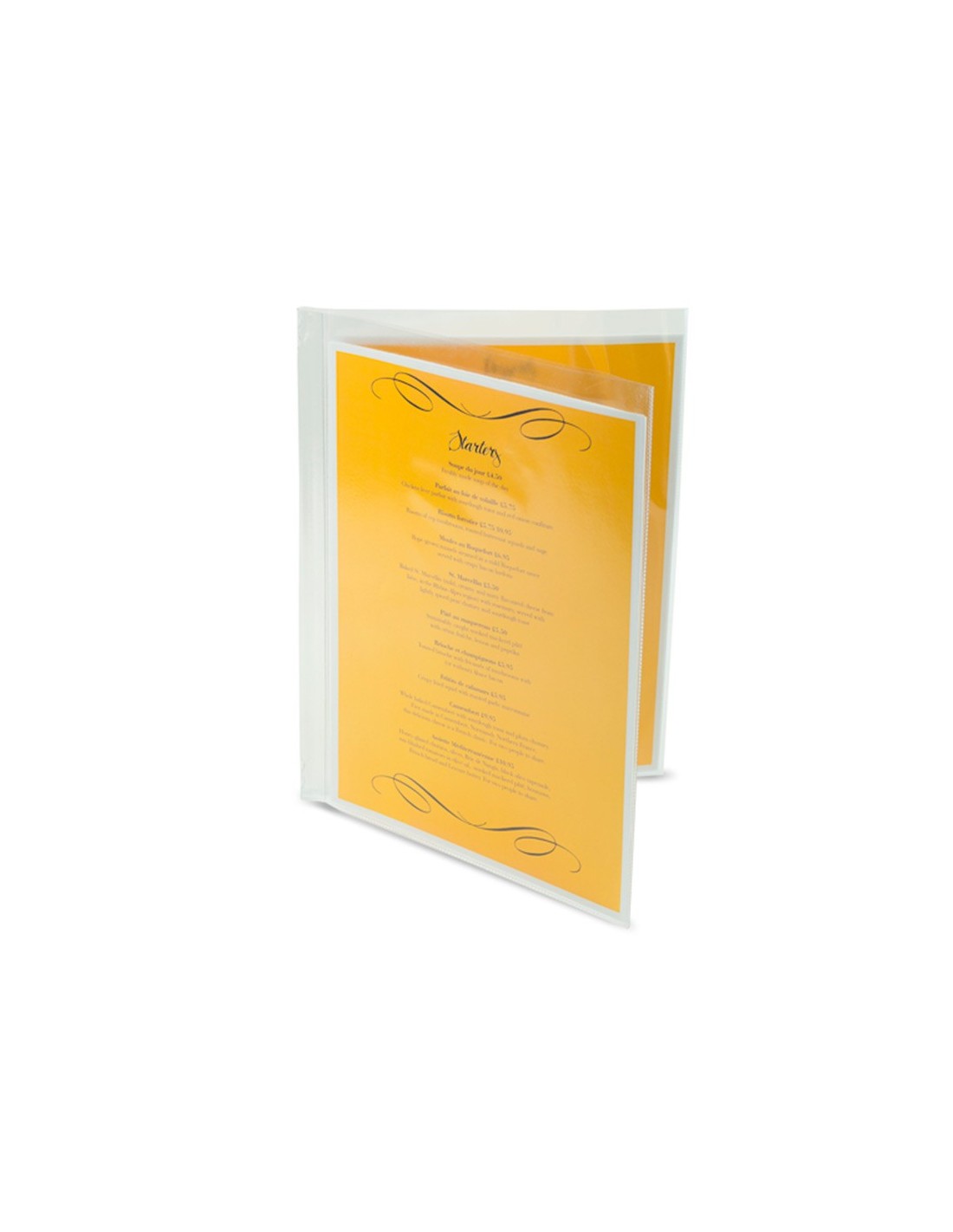 Adecuada para la protección y presentación de documentos, fabricada en PVC transparente. Contorno soldado. Abertura central para ambos cuerpos. 180 micras. Tamaño folio doble.