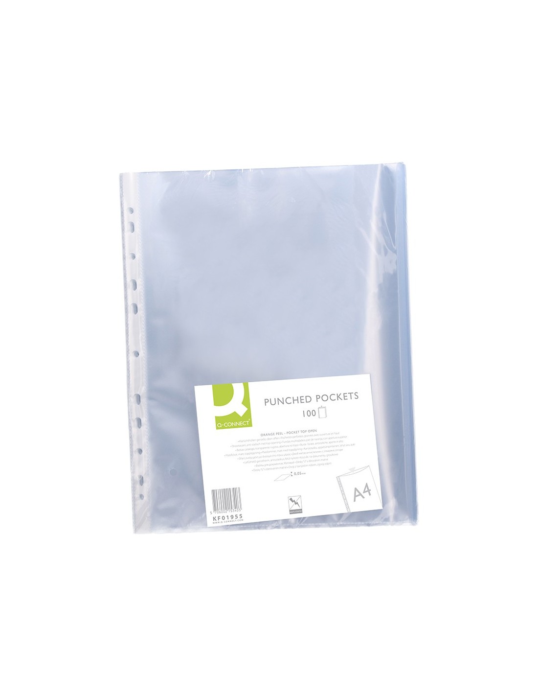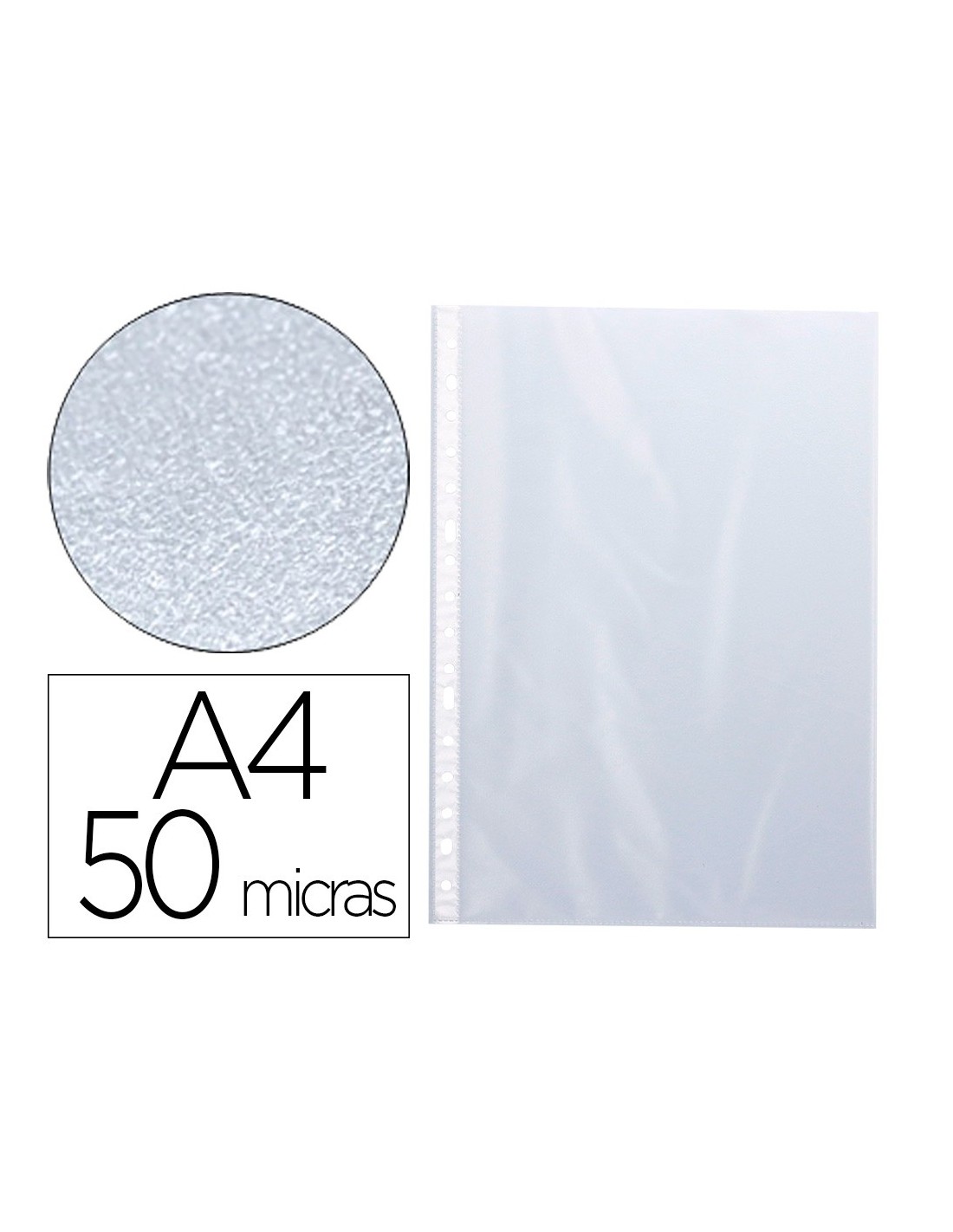 Funda para la protección y archivo de documentos. Fabricada en polipropileno piel de naranja. 11 taladros. Formato DIN A4. La bolsa de 100 unidades.