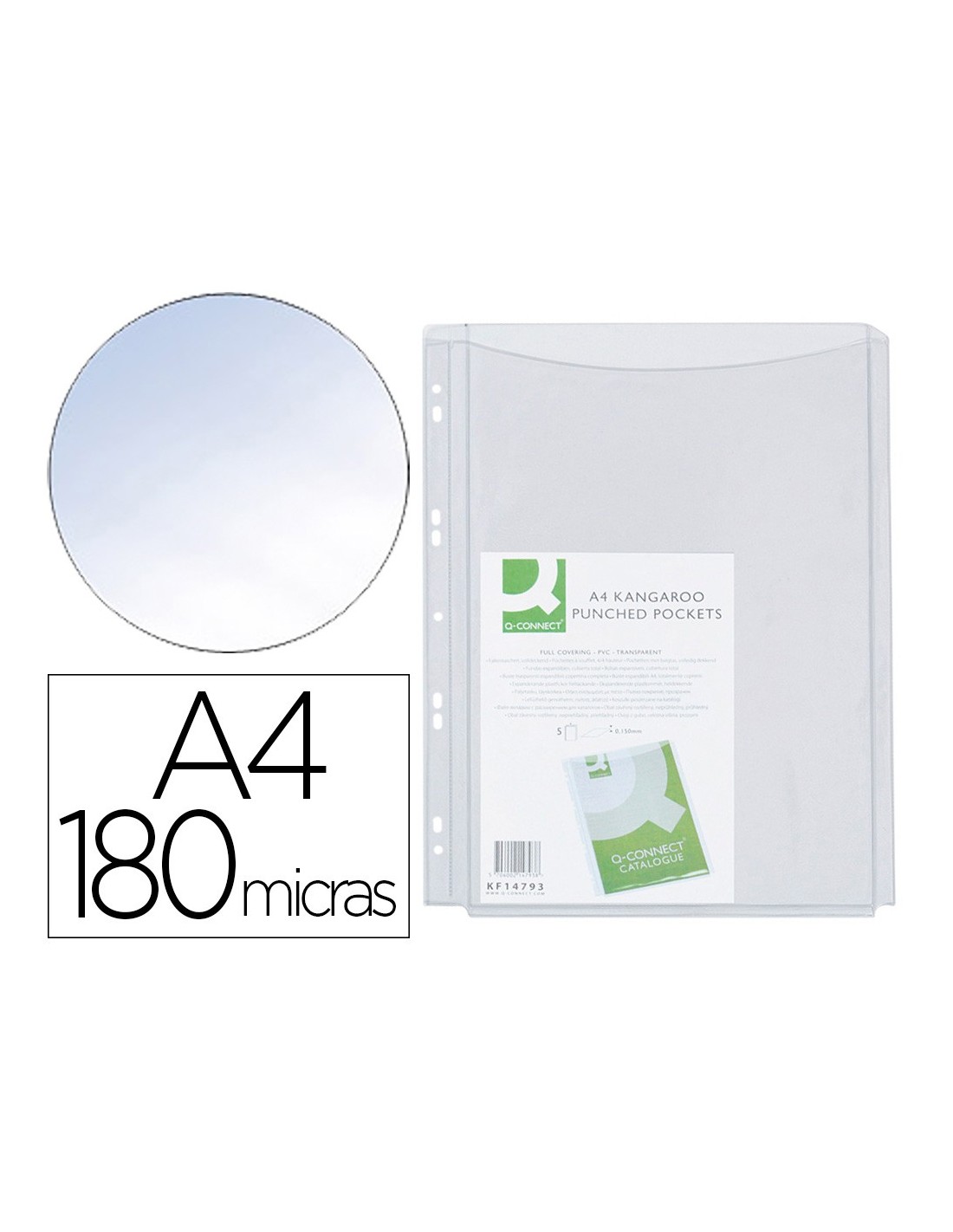 Funda multitaladro para protección y archivo de documentos. De gran capacidad, es ideal para el archivo de documentos gruesos y catálogos. Fabricada en PVC de 180 micras. Extensible hasta 10 mm. Capacidad de hasta 100 hojas de 80 g/m². Multitaladros. Formato DIN A4. El pack de 5 unidades.