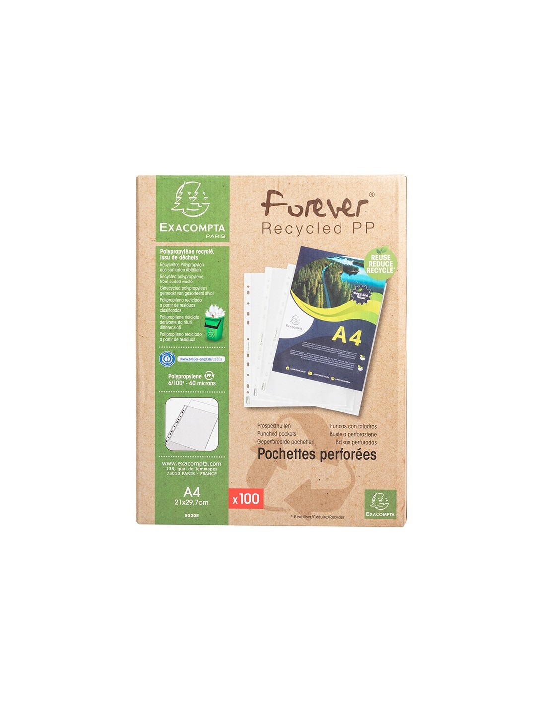 Funda multitaladros fabricada en polipropileno 100% reciclado de gran transparencia. En calidad de 60 micras. Certificadas Angel Azul. Caja de 100 unidades.