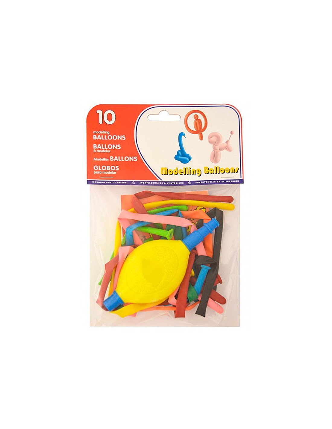 Globos alargados para hacer figuras en diferentes colores. Incorpora un inflador. La bolsa de 10 unidades.