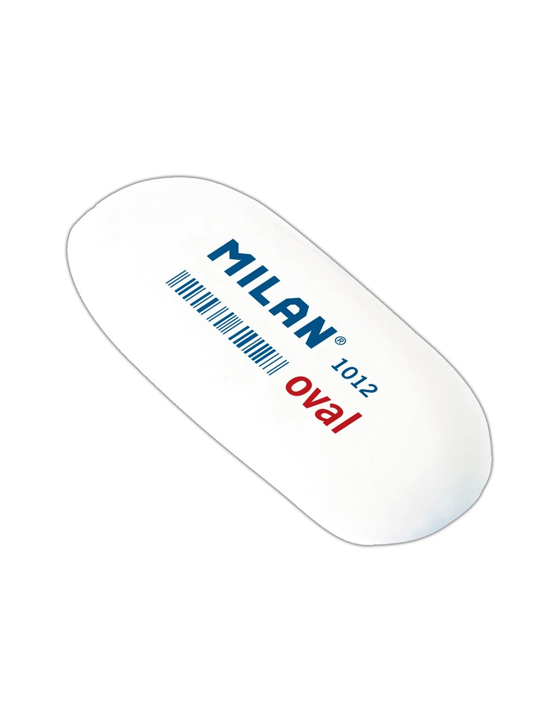 Goma suave de caucho sintético tipo miga de pan ovalada. Para borrar una amplia gama de lápices de grafito sobre toda clase de papeles. Colorblanco. Medidas: 6,2 x 2,8 x 1,2 cm. Disponible también con funda. Las gomas de borrar MILAN están fabricadas en España desde 1918.