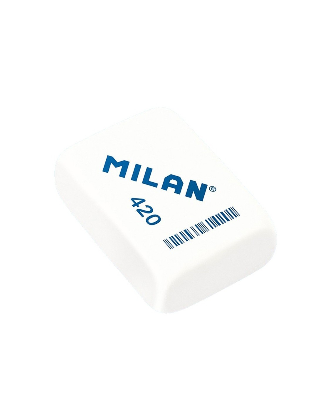 Goma suave de caucho sintético tipo miga de pan. Para borrar una amplia gama de lápices de grafito sobre toda clase de papeles. Colores surtidos: blanco y rosa. Medidas goma: 4,1 x 2,8 x 1,3 cm. Las gomas de borrar MILAN están fabricadas en España desde 1918.