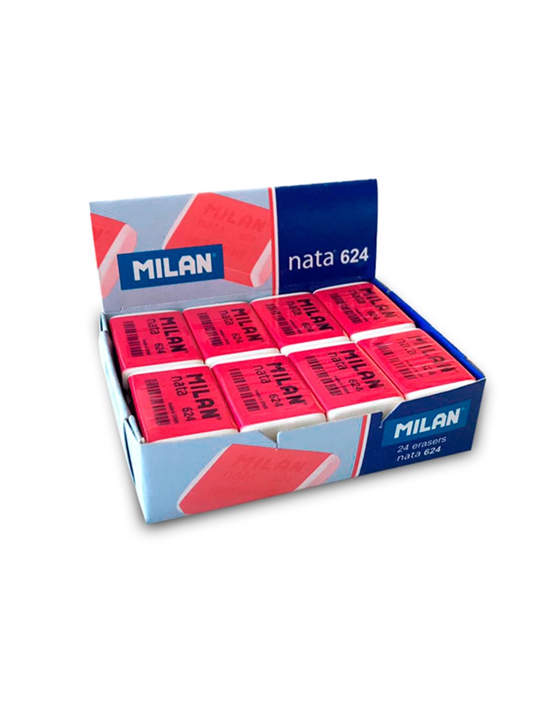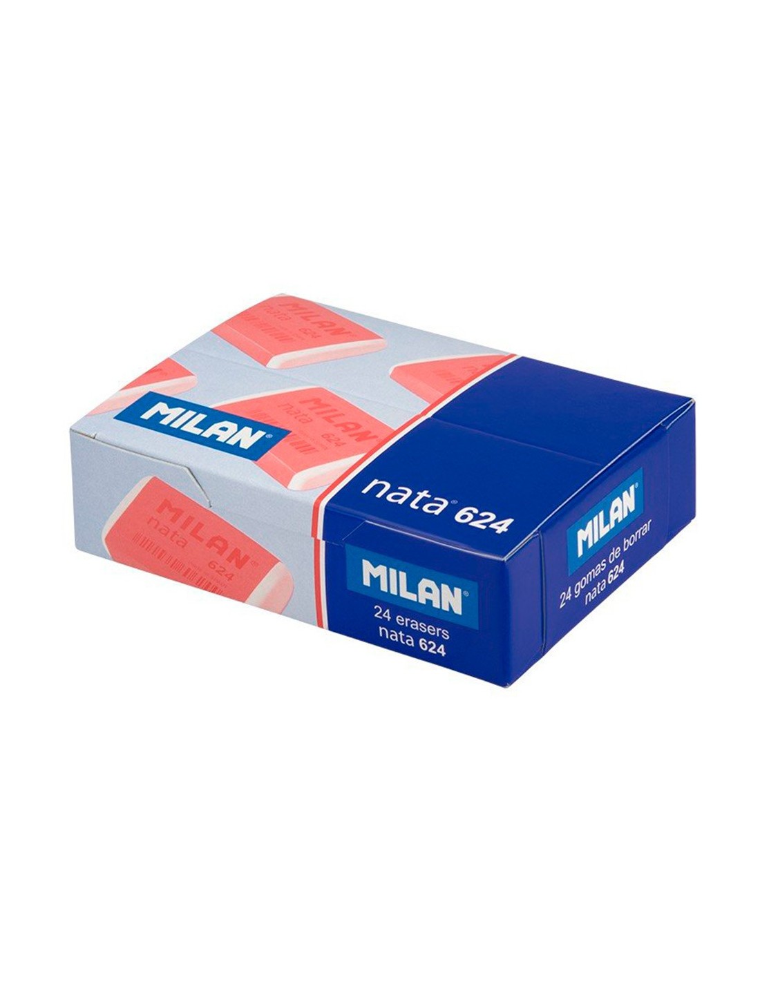 Goma nata® de plástico blanca, suave, versátil y no abrasiva. Para borrar sobre todo tipo de superficies. No daña el papel. Envuelta en celofán rosa. Nacida en la década de los 60, es una de las gomas MILAN más populares. Medidas goma: 3,9 x 2,7 x 0,9 cm. Las gomas de borrar MILAN están fabricadas en España desde 1918.