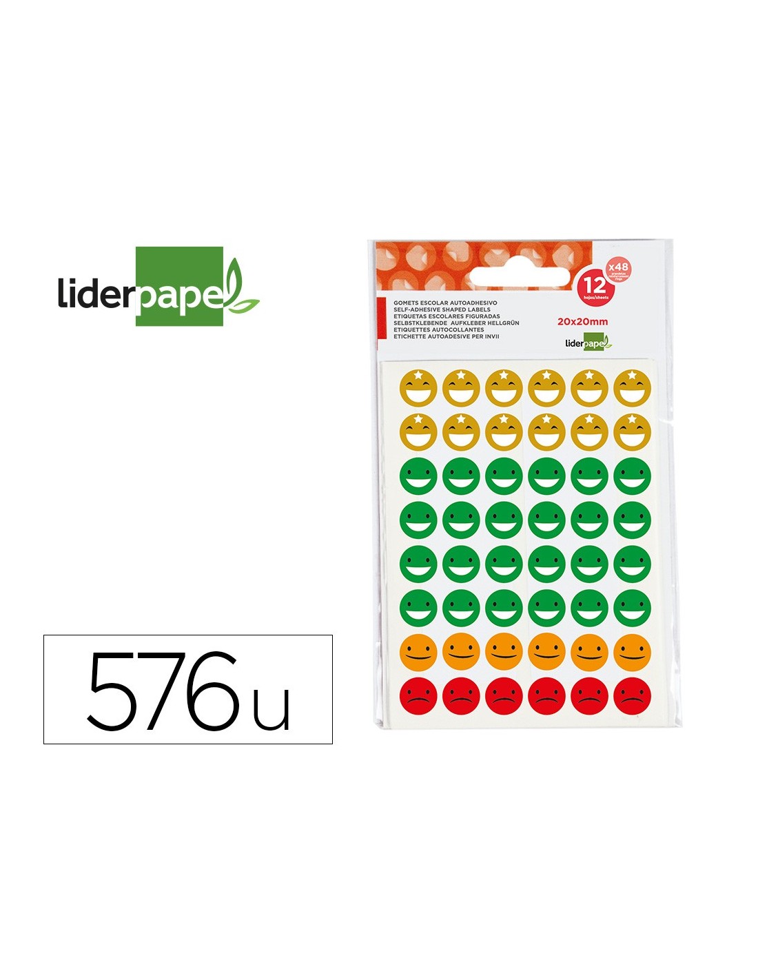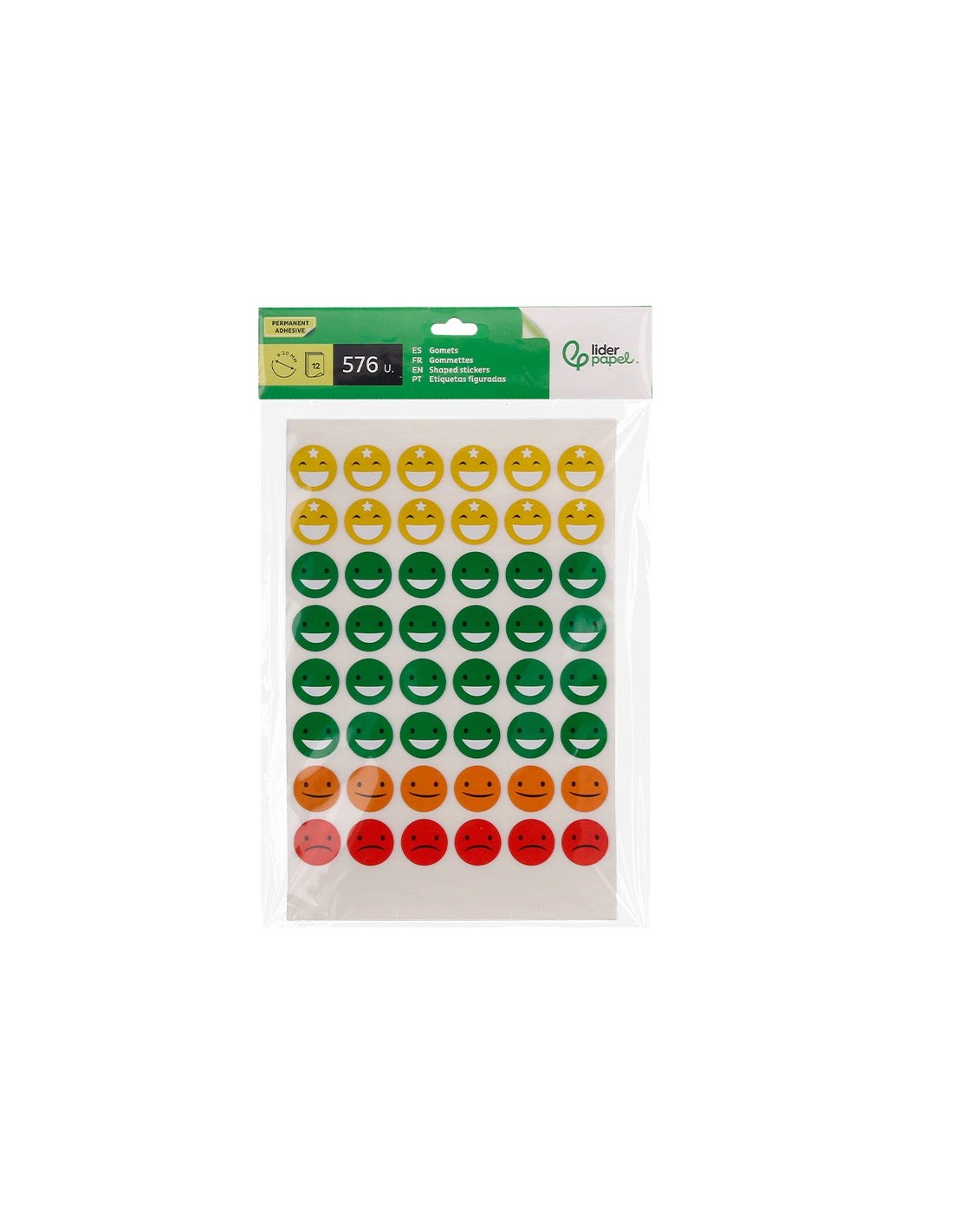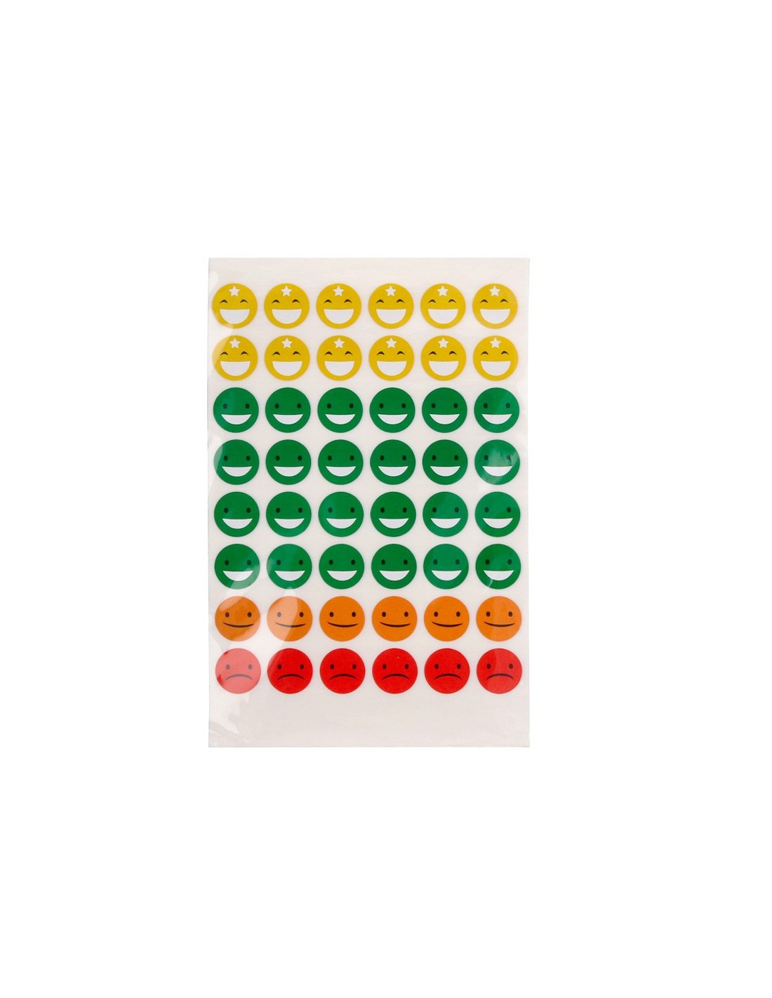 Etiquetas redondas con caras expresivas. Pensadas para premiar y motivar a los niños. Colores y formas surtidas. Tamaño del gomet: 20 mm de diámetro. 48 pegatinas por hoja.
