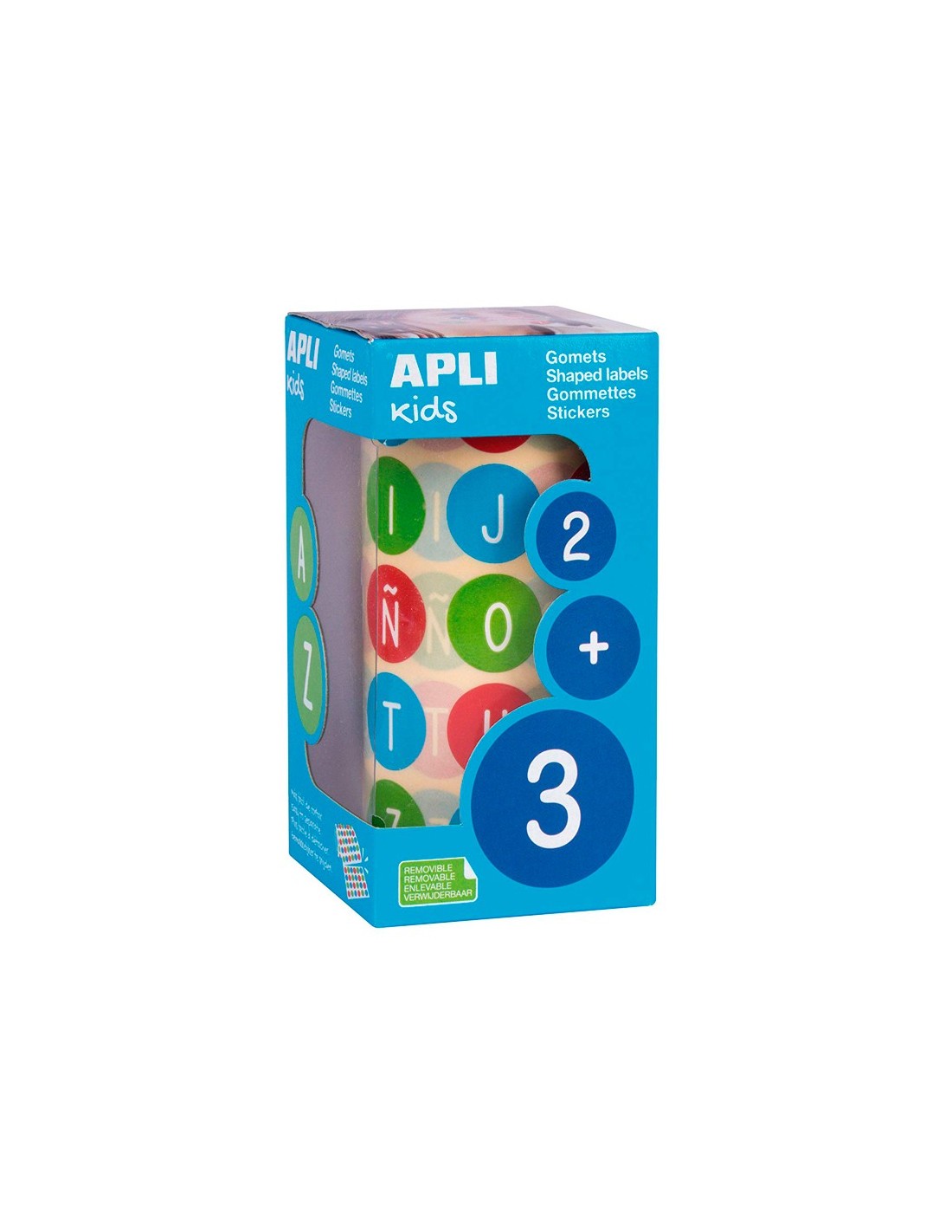 Gomets autoadhesivos precortados, fabricados en adhesivo removible que permite despegar sin dejar rastro. Letras en colores surtidos. Diámetro: 20 mm. Cantidad por rollo: 900 gomets.