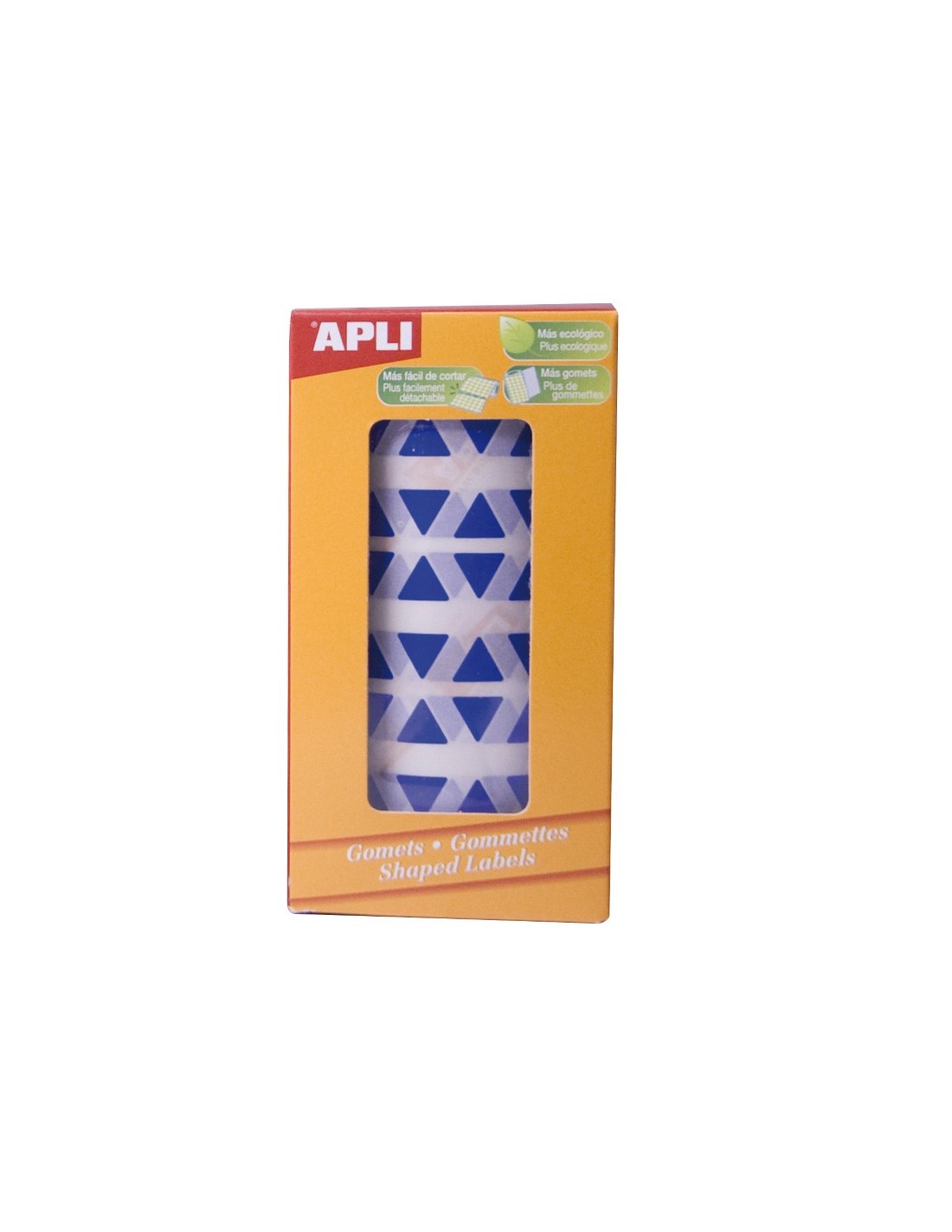 Etiquetas de diferentes formas y colores en rollo. Triángulos: 20 x 20 x 20 mm. Cantidad por rollo: 2832 gomets. Cuadrados: 20 x 20 mm. Redondos: 20 mm de diámetro. Cantidad por rollo: 1770 gomets.