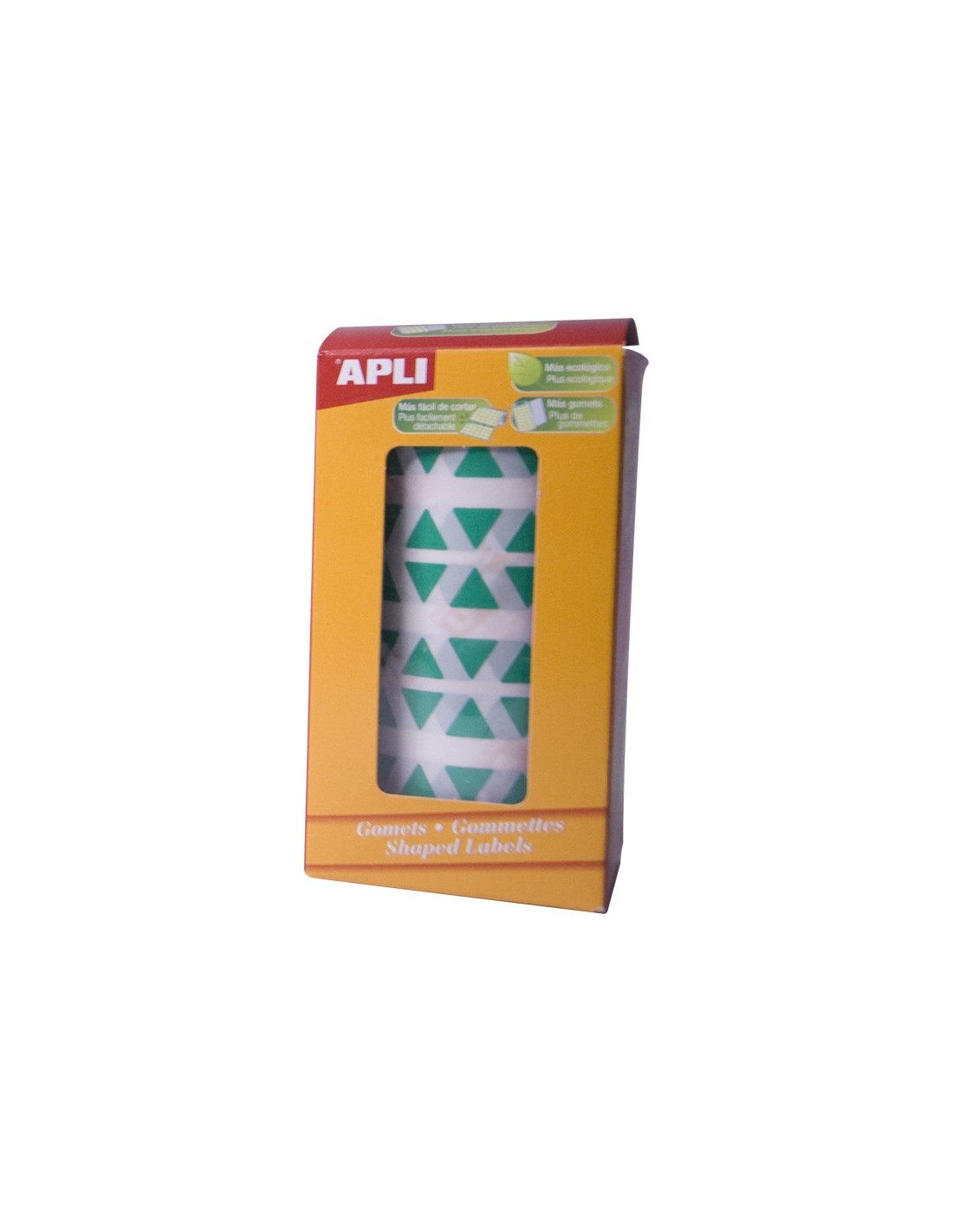 Etiquetas de diferentes formas y colores en rollo. Triángulos: 20 x 20 x 20 mm. Cantidad por rollo: 2832 gomets. Cuadrados: 20 x 20 mm. Redondos: 20 mm de diámetro. Cantidad por rollo: 1770 gomets.