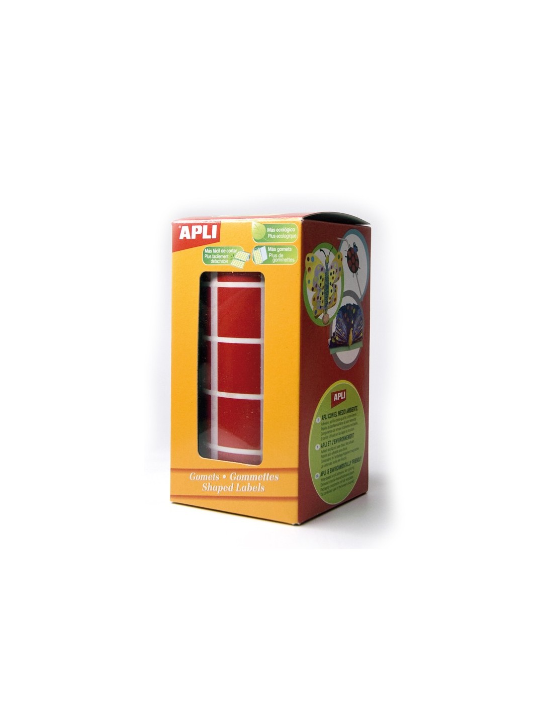 Etiquetas de diferentes formas y colores en rollo. Triángulos: 20 x 20 x 20 mm. Cantidad por rollo: 2832 gomets. Cuadrados: 20 x 20 mm. Redondos: 20 mm de diámetro. Cantidad por rollo: 1770 gomets.