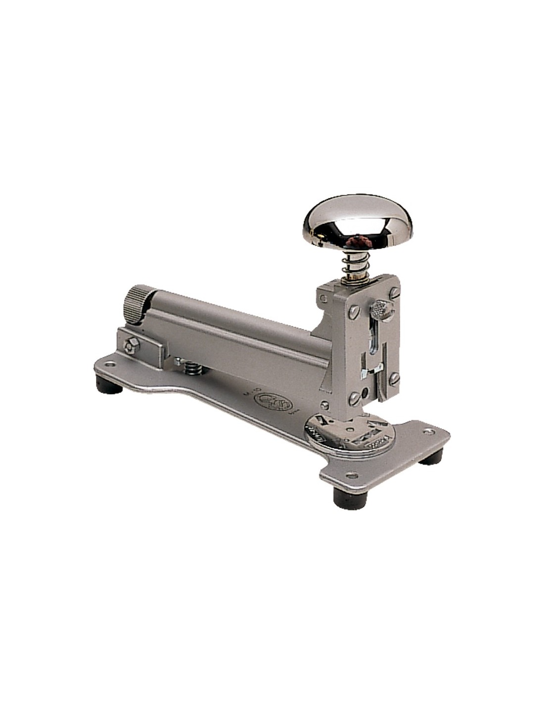 Fabricada en acero pintado. Usa grapas nº 22/6 y 24/6. Longitud del grapado a 80 mm del borde de la hoja. Carga 2 peines (100 grapas). Capacidad de grapado: 25 hojas. Carga trasera. Dispone de tornillo antiatascos. Color gris. Longitud de la base: 130 mm. Medidas: 57 x 95 x 132 mm.