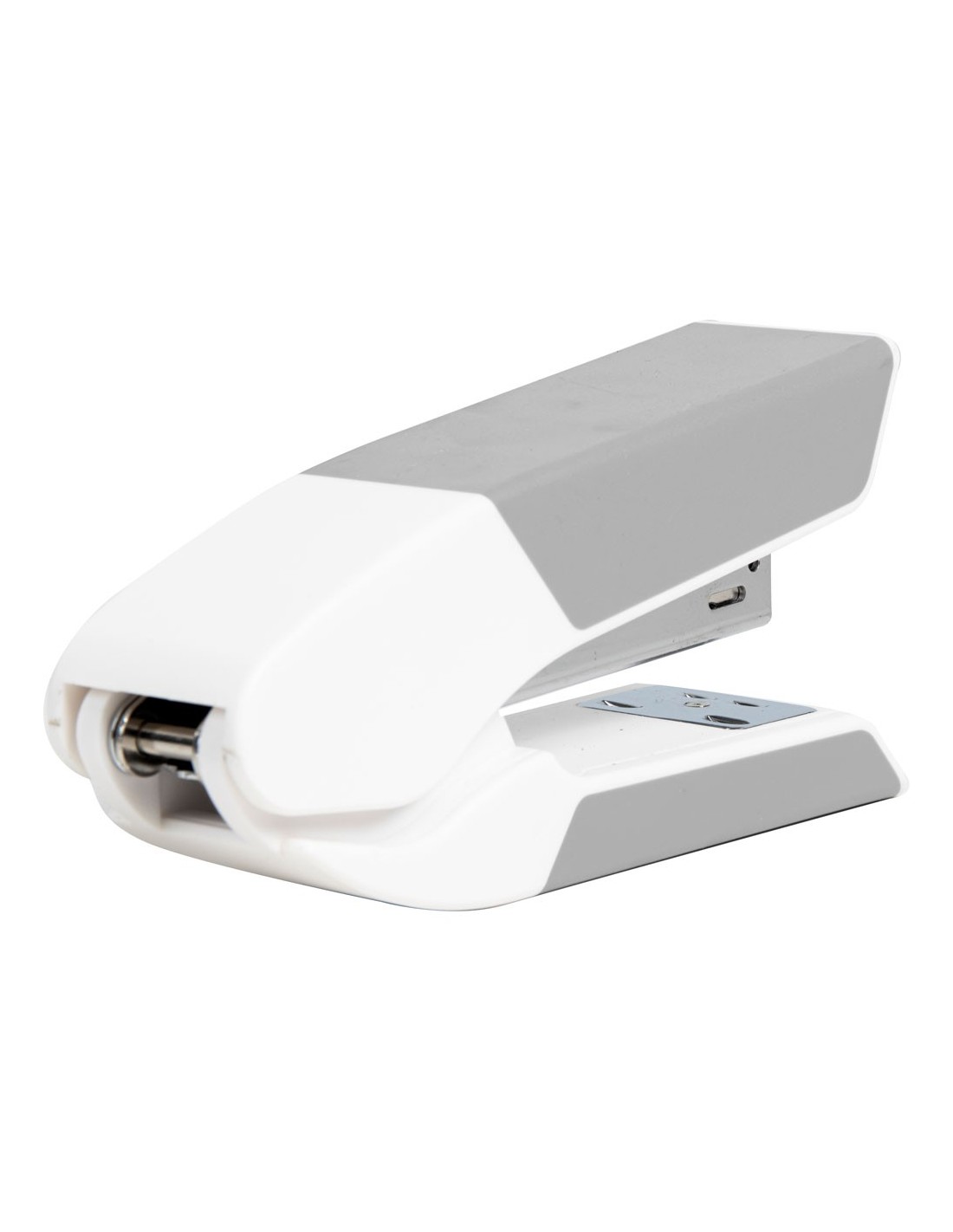 Grapadora fabricada en plástico con mecanismo metálico. Usa grapas 26/6. Longitud del grapado a 60 mm del borde de la hoja. Carga 2 peines (100 grapas). Incluye una caja de 1 000 grapas y un extraegrapas. Colores surtidos: coral, gris y turquesa. Longitud de la base: 130 mm. Medidas: 35 x 65 x 130 mm.