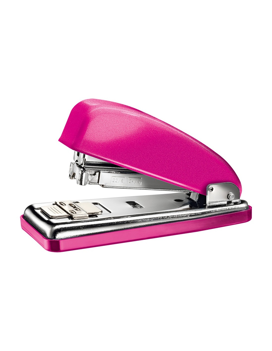 Grapadora completamente metálica. Capacidad de hasta 30 hojas. Capacidad de carga de 70 grapas nº 22/6-24/6. Longitud del grapado a 70 mm del borde de la hoja. Apertura frontal automática antibloqueo. Cargador doble guía. Con nueva tecnología DIT para un grapado siempre perfecto. Cubeta base plástica antideslizante. Grapado abierto, cerrado y clavado. Garantía 10 años. Longitud de la base: 125 mm. Medidas: 55 x 76 x 125 mm.