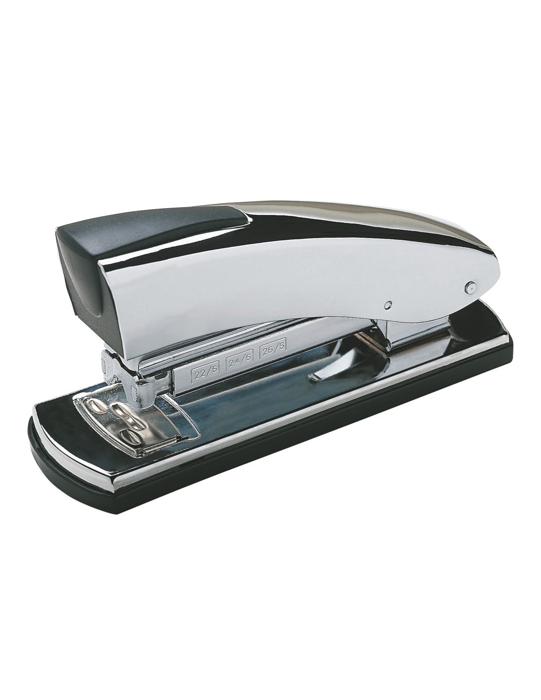 Metálica cromada. Longitud del grapado a 72 mm del borde la hoja. Capacidad de grapado: 30 hojas. Carga 2 peines (100 grapas) nº 22/6, 24/6 y 26/6. Con base plástica antideslizante. Con cargador frontal doble guía antiatascos. Incorpora el grapado PGT (Paper Grip Tecnoloy) para un grapado siempre perfecto. Longitud de la base: 135 mm. Medidas: 50x70x150 mm.