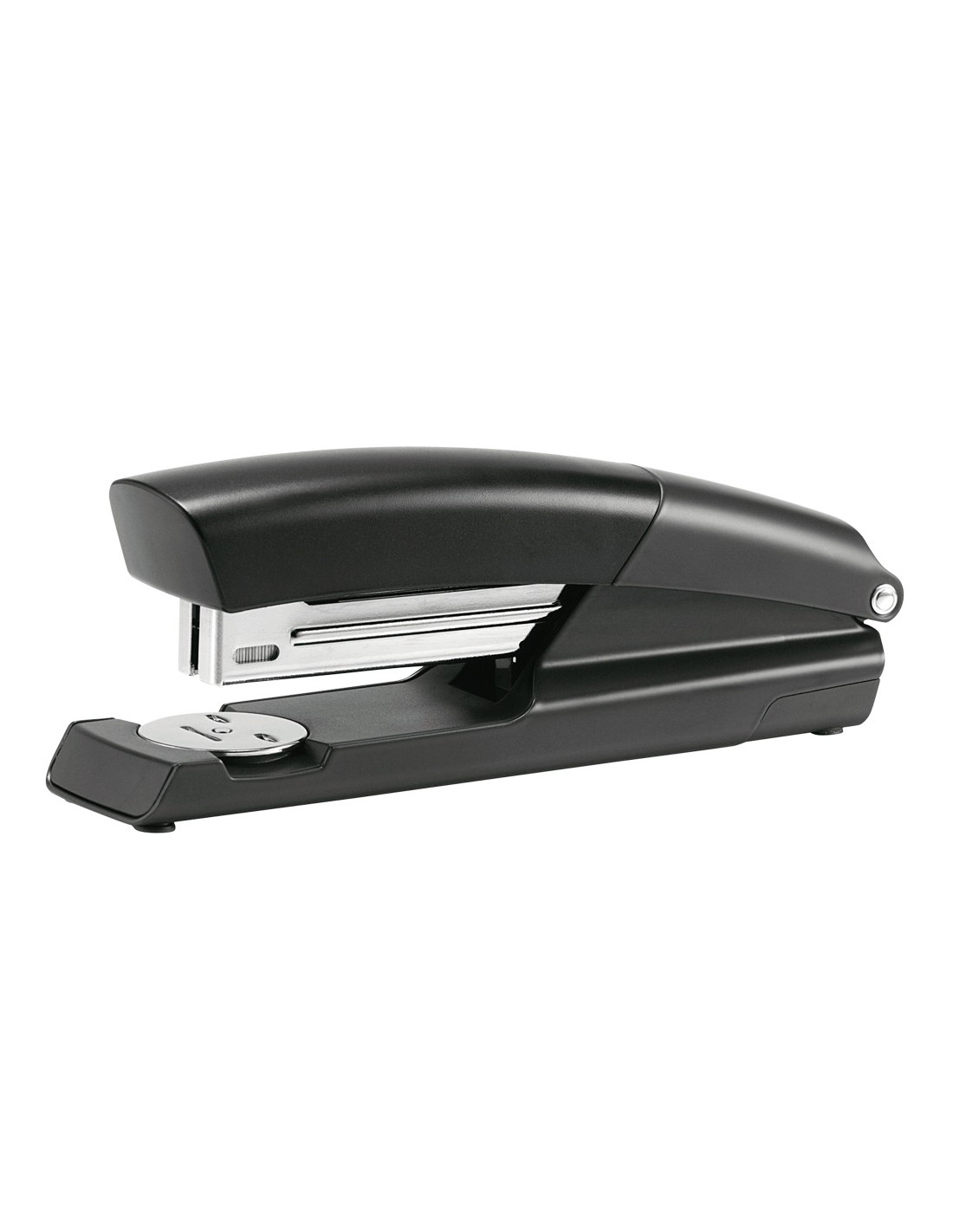 Resistente grapadora de metal para uso cotidiano. Robusta y fiable. La tecnología de impacto directo patentada, así como la utilización de grapas Petrus 22/6-24/6-26/6 o 22/8-24/8-26/8 garantizan siempre un grapado perfecto. Longitud del grapado a 60 mm del borde de la hoja. Carga 3 peines (150 grapas). Con base plástica antideslizante. Preparada para uso intensivo. Con cargador superior doble guía antiatascos. Color negro. Longitud de la base: 165 mm. Medidas: 42 x 65 x 176 mm.