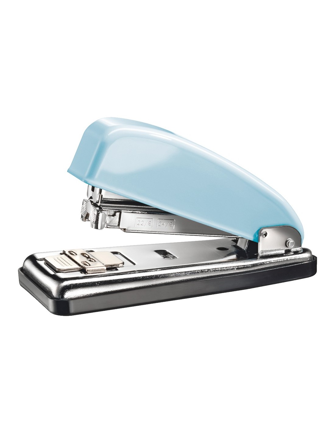 Grapadora completamente metálica en edición Retro con novedosos colores. Con capacidad de carga de 70 grapas nº 22/6 y 24/6. Longitud de grapado a 72 mm del borde de la hoja. Con base plástica antideslizante. Con cargador doble guía antiatascos. Carga frontal. Incorpora el grapado PGT (Paper Grip Tecnology) para un grapado siempre perfecto. Longitud de la base: 125 mm. Medidas: 55 x 76 x 125 mm.