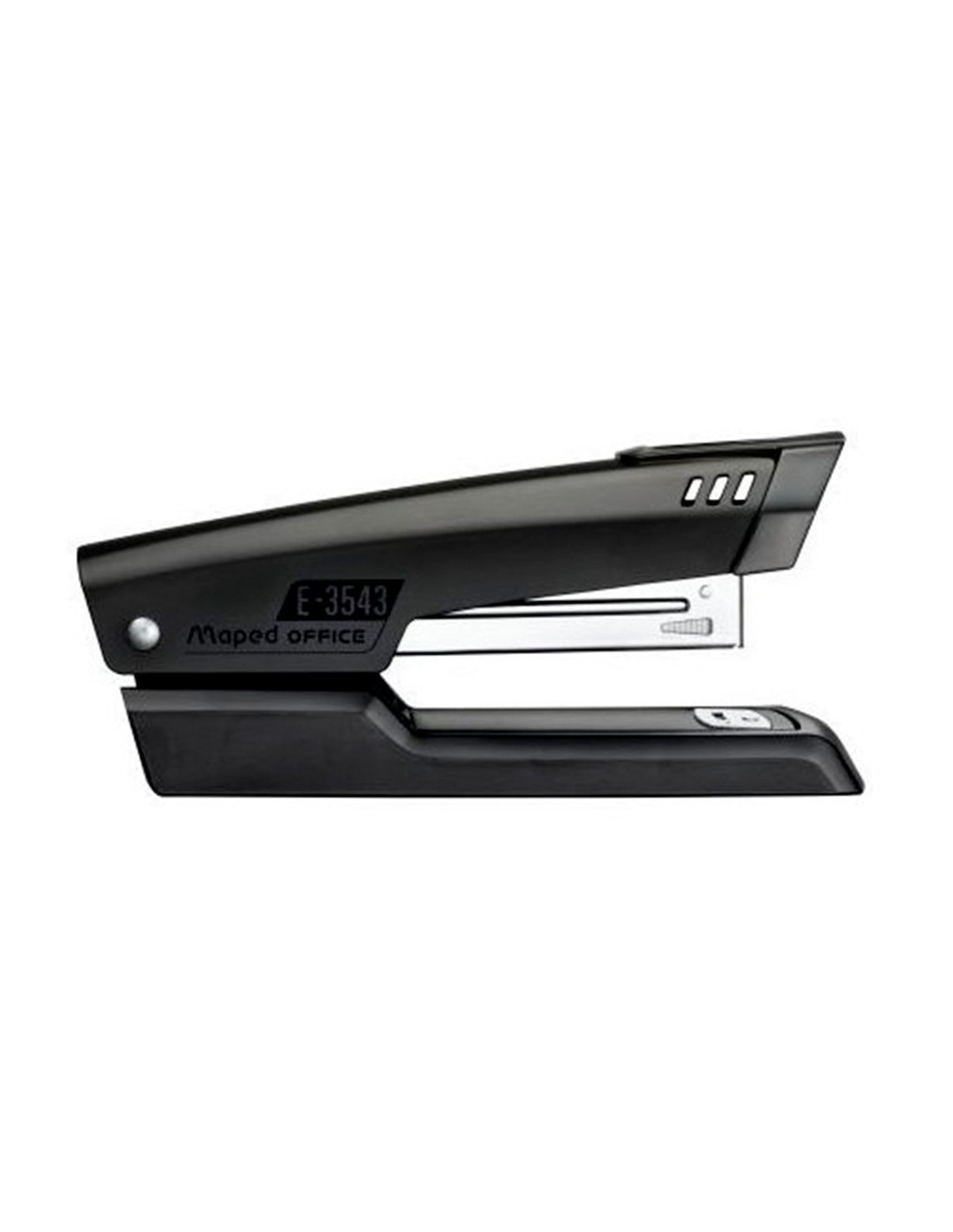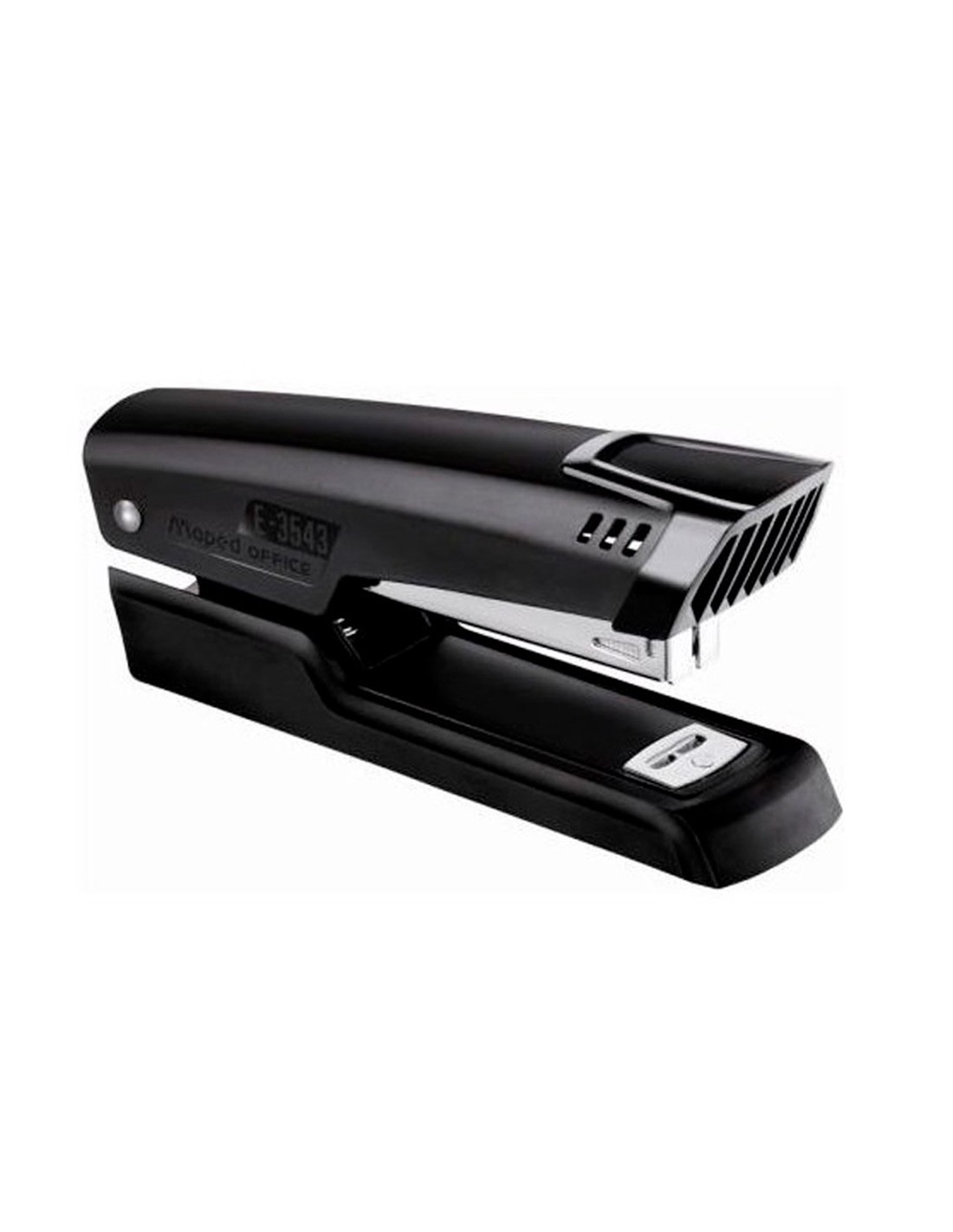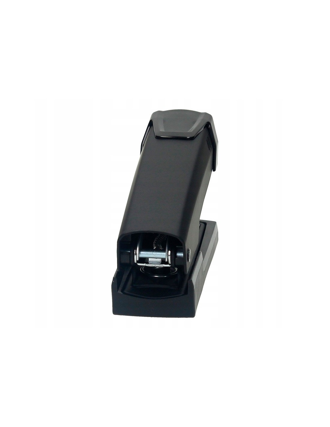 Grapadora metálica. Color negro. Con visualización de la reserva de grapas. Realiza 2 funciones: grapado y clavado. Usa grapas 24/6 y 26/6. Capacidad de carga: 100 grapas 24/6 ó 140 grapas 26/6. Carga superior. Capacidad de grapado hasta 25 hojas. Profundidad de grapado: 61 mm. Longitud de la base: 120 mm. Medidas: 32 x 62 x 120 mm.