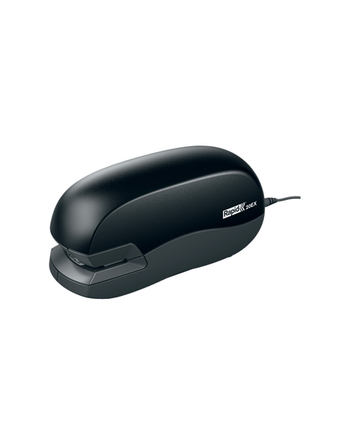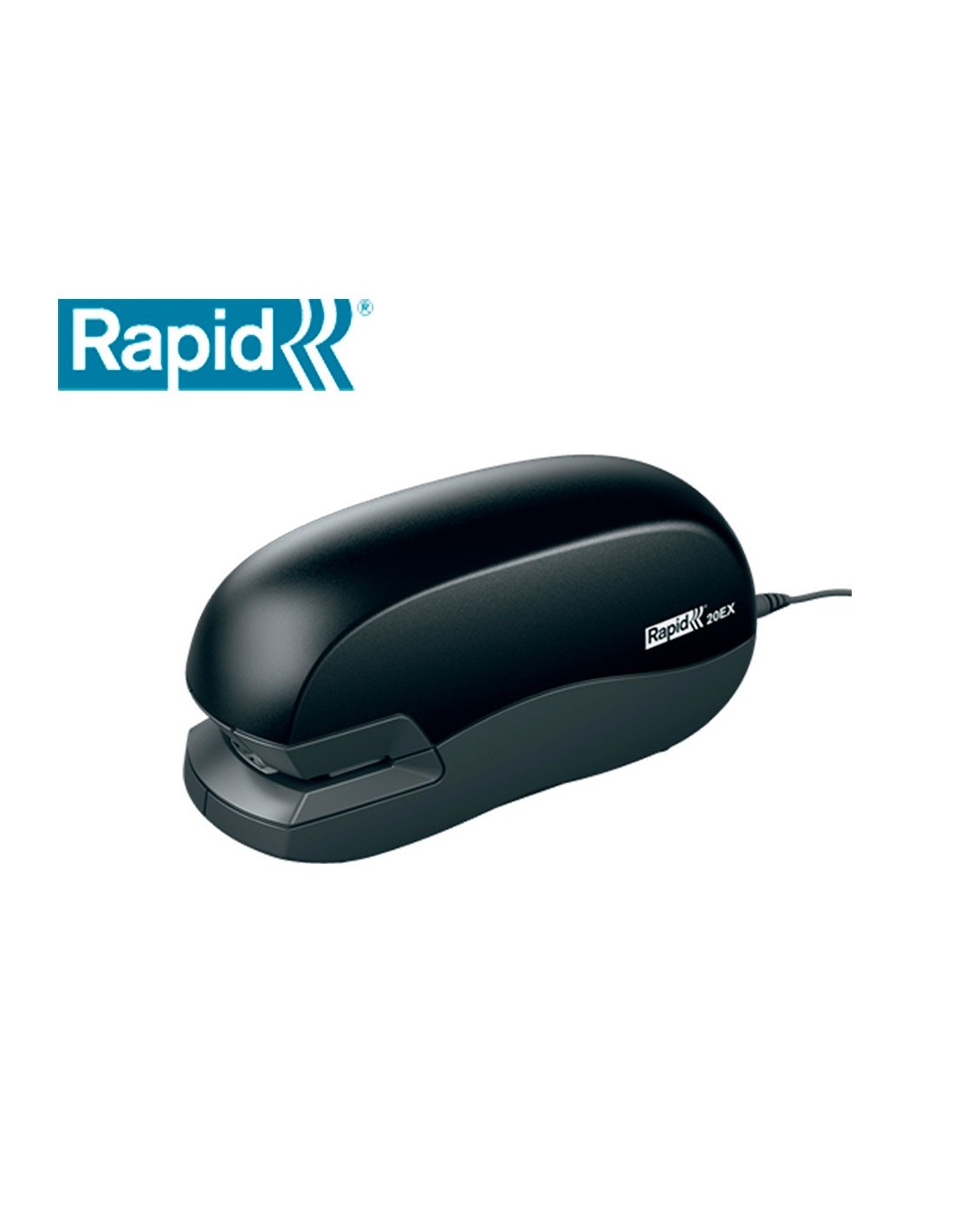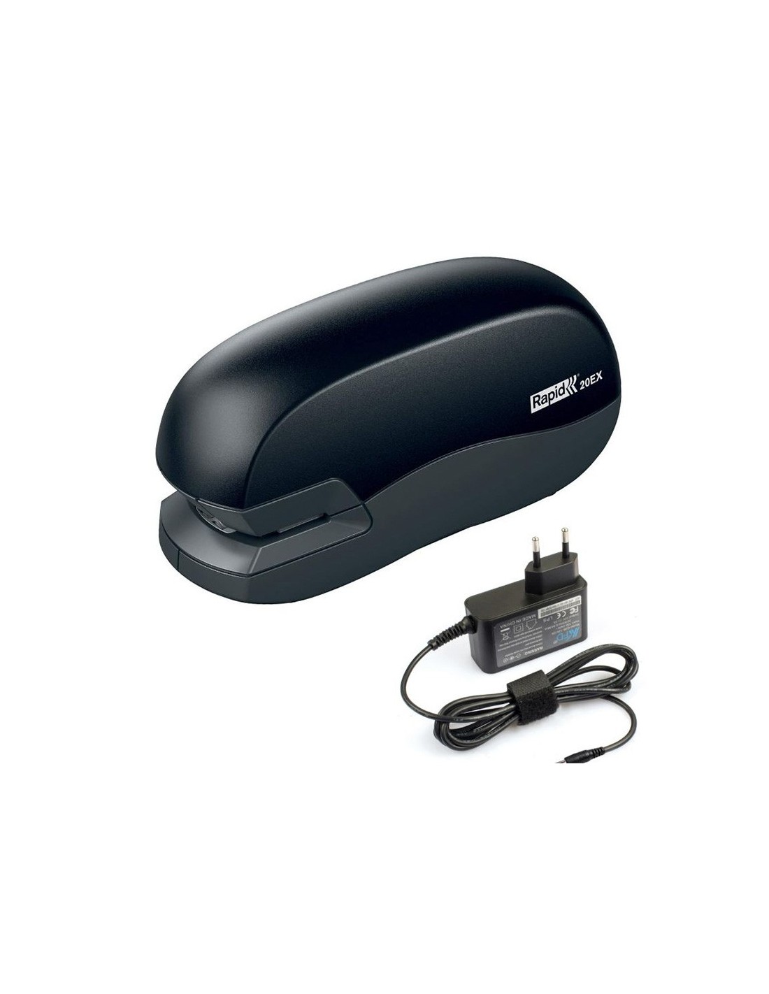Grapadora eléctrica compacta para uso doméstico, de sobremesa o en recepciones. Alimentada con corriente con adaptador eléctrico (incluido), fácil de utilizar con una sola mano. Se abre por la parte frontal para facilitar la recarga.