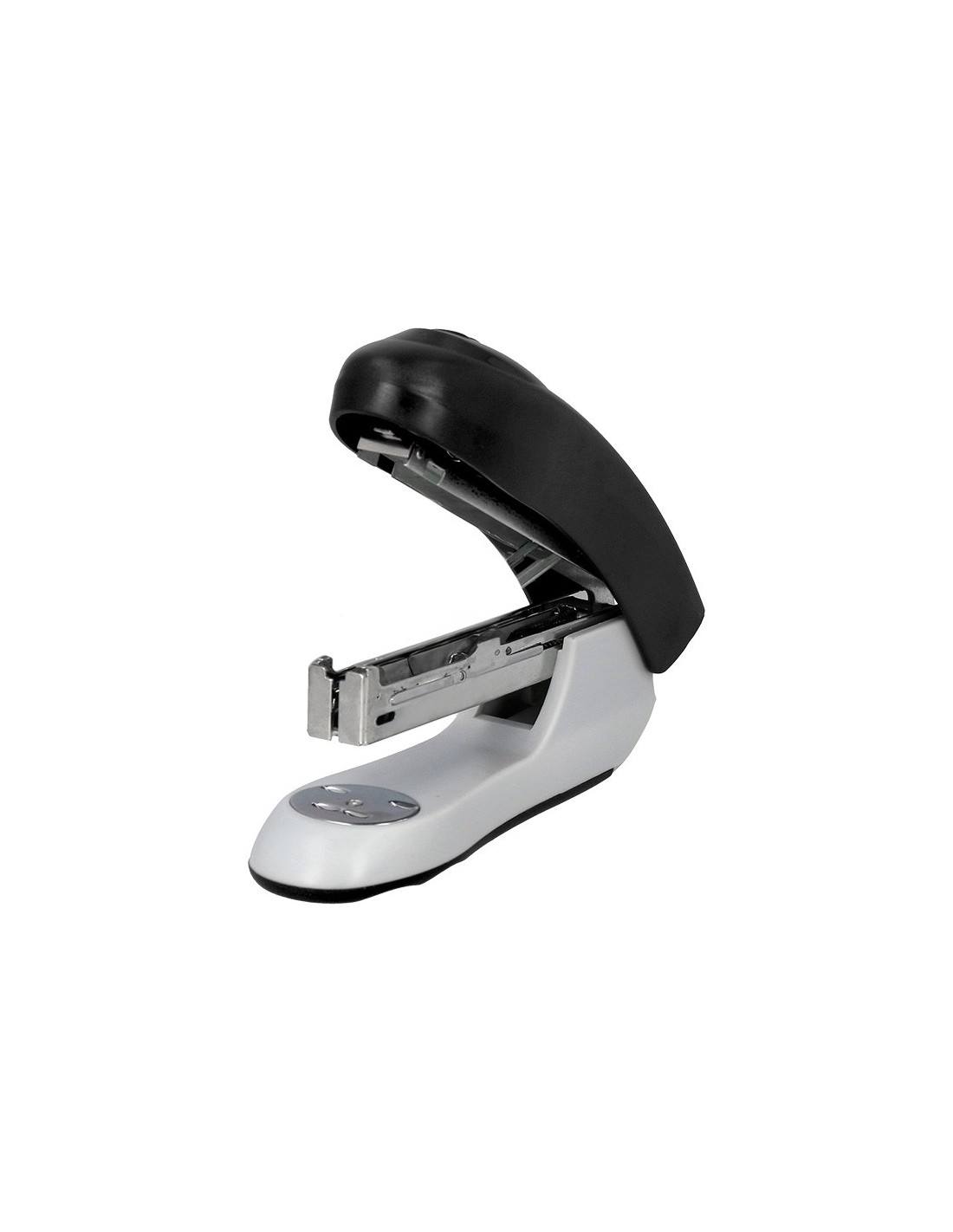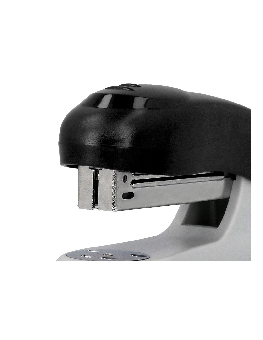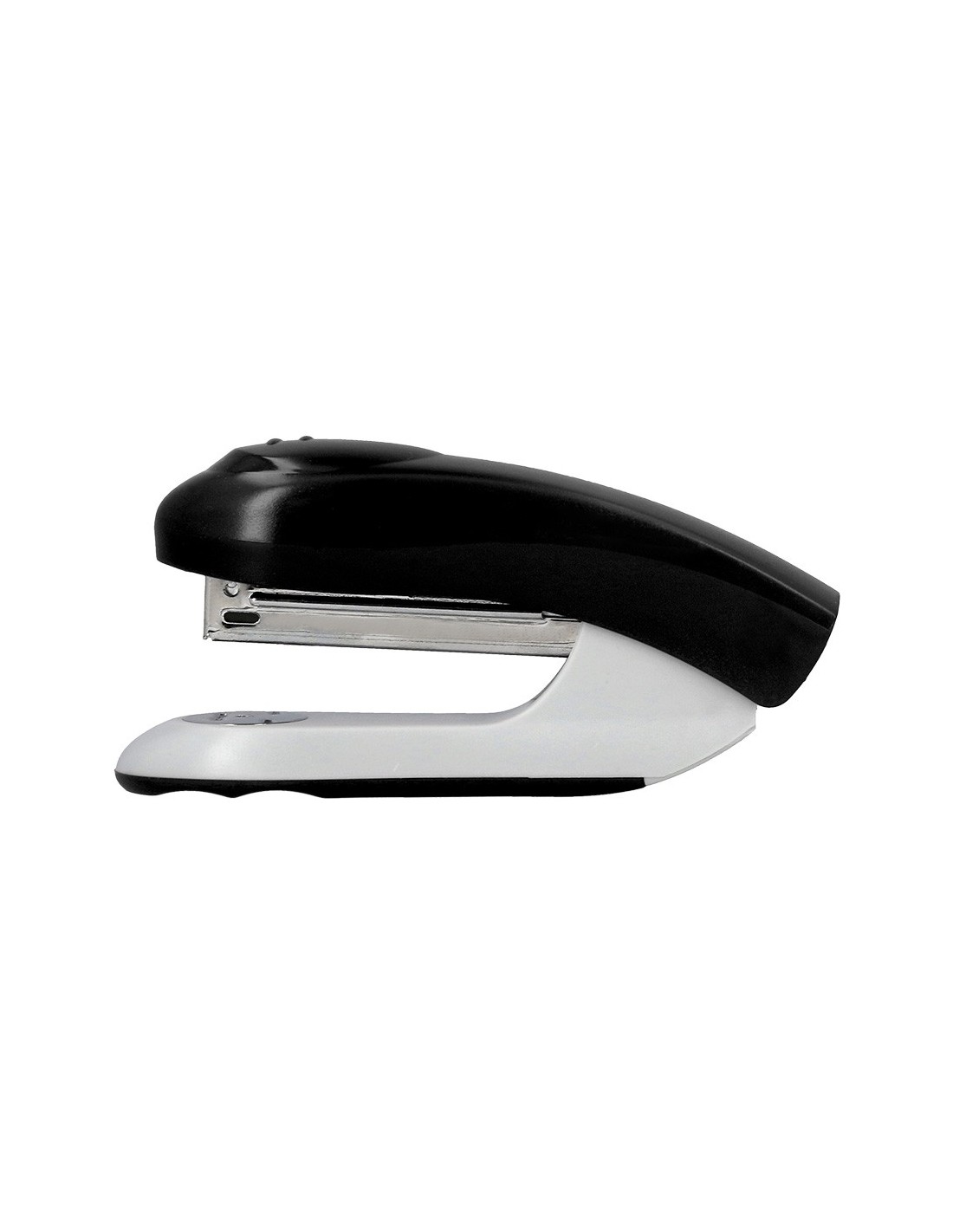 Grapadora de plástico con mecanismo metálico. Usa grapas nº 10. Longitud del grapado al borde de la hoja: 50 mm. Carga 2 peines (100 grapas). Con extraegrapas trasero. Longitud de la base: 105 mm. Medidas: 28 x 45 x 105 mm. Color negro.