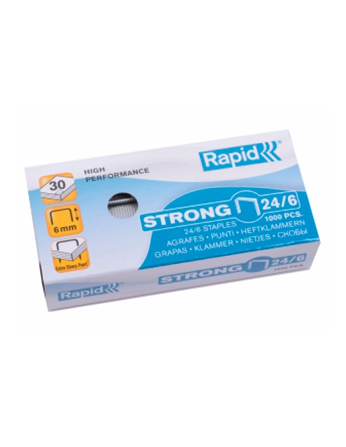 Grapas de alambre reforzado galvanizado para un mejor rendimiento. Bordes afilados para mejor penetración. Nº 24/6. Para F30, FM32, Freeze, S1, S17, S27, S30 y S50. La caja de 1000 grapas.