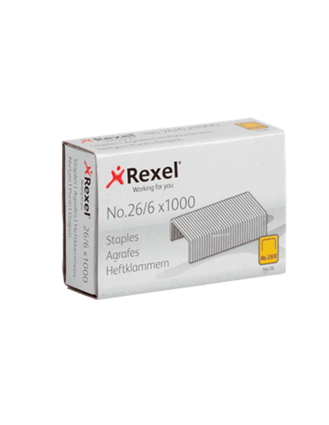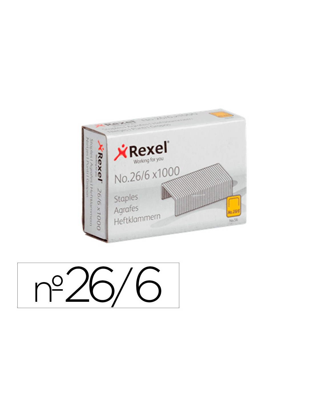 Las grapas Rexel nº 56 (26/6) proporcionan una solución fiable y de alta calidad para todas tus necesidades de grapado de sobremesa. La longitud de la grapa de 6 mm grapa hasta 20 hojas de papel (80 gr), lo que las hace ideales para las tareas habituales de grapado en casa, en la oficina o en laescuela. Diseñadas para su uso con grapadoras de sobremesa y tenazas de g rapado para un grapado preciso y sin problemas. Fabricadas en acero de alta calidad y suministradas en un paquete de 1000 grapas.