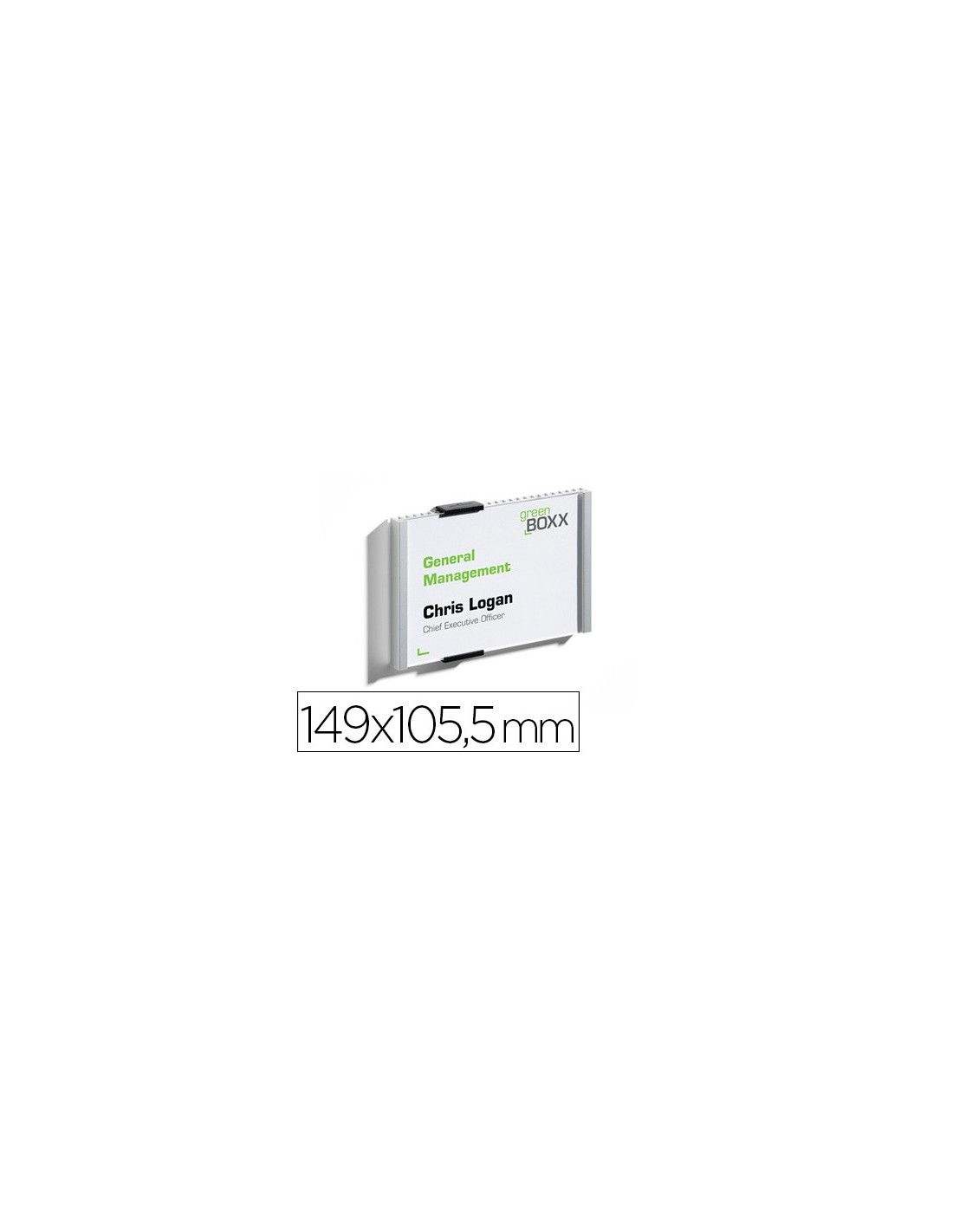 Identificador para puertas de aluminio con placas acrílicas antirreflectantes. Fácil de fijar a la pared con la banda adhesiva o los tornillos adjuntos. Las plantillas de impresión se descargan gratuitamente de la página web www.durable.eu. Incluye cartulina, material e instrucciones de montaje. Color: metálico plateado. Tamaño de la etiqueta: 149 x 105,5 mm.