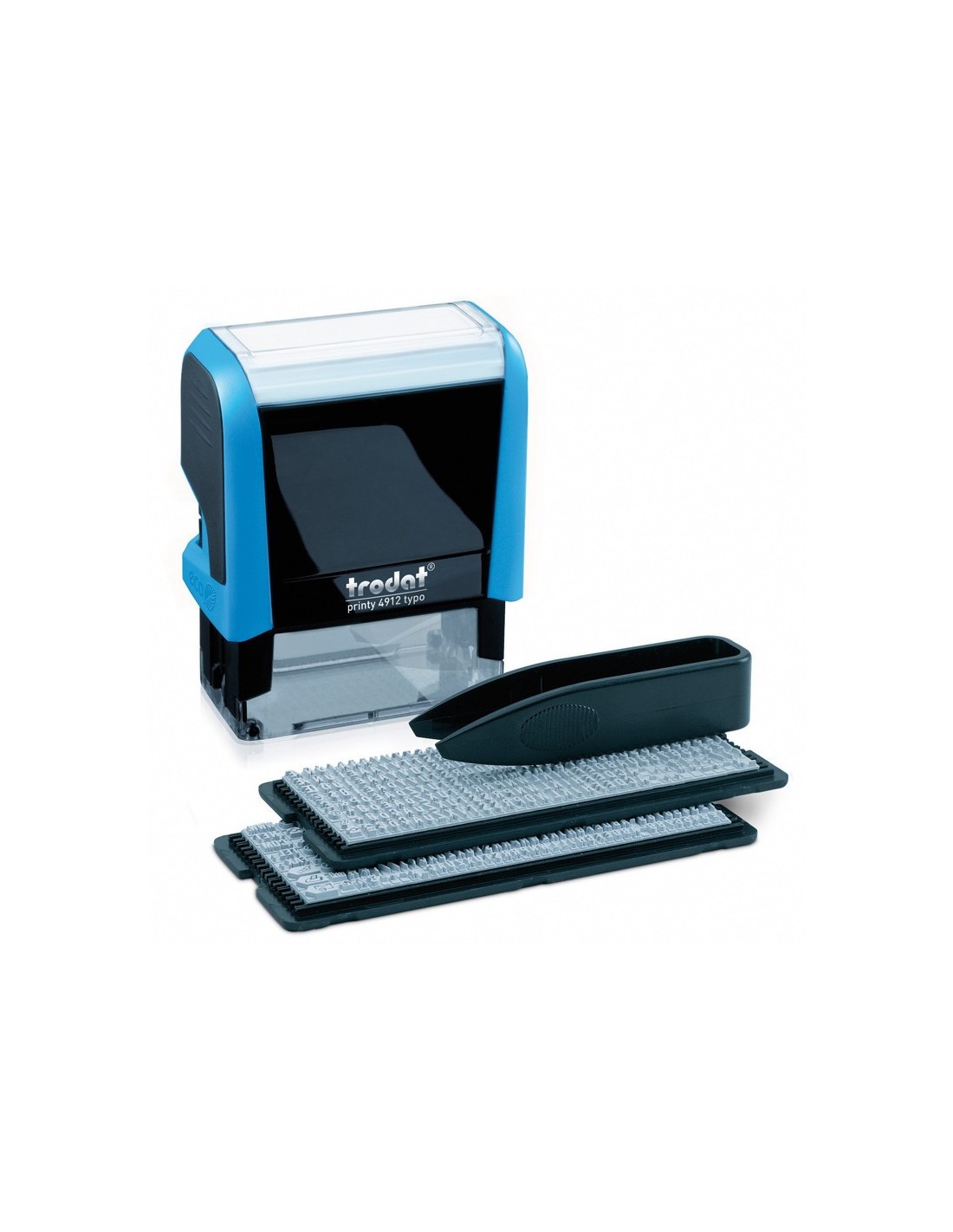 Sello para componer su propio texto. Entintaje automático. Medidas de la placa: 47 x 18 mm. Placa rectangular. Contiene 1 juego de tipos de 3 mm y otro de 4 mm. Con almohadilla azul. Presentación en blíster. Letra mayúscula.