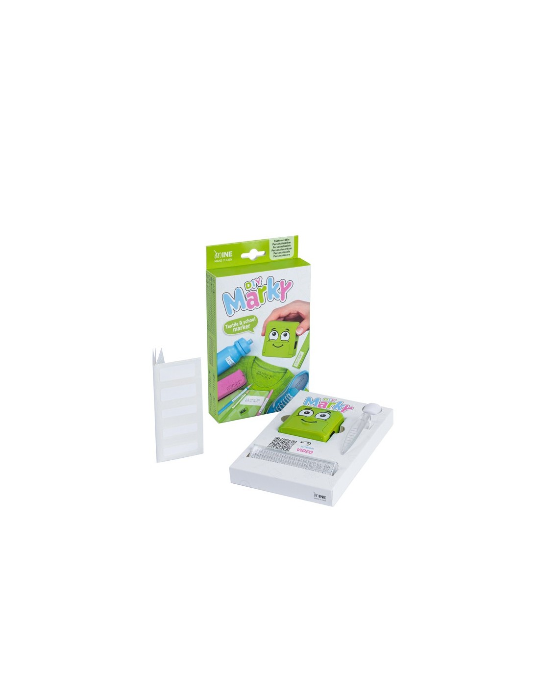 La forma más rápida, fácil y cómoda de proteger todos los objetos de los niños. Cada sello Marky viene con una almohadilla de tinta incorporada, continta especial que dura hasta 1000 impresiones, que se adhiere a los teji dos y a todas las superficies absorbentes. Pero eso no es todo, con las etiquetas incluidas en el set, incluso es posible personalizar en cualquier momento superficies no absorbentes, como botellas de bebida, fiambreras, bolígrafos y estuches de lápices. Y lo mejor, la tinta especialmente desarrollada para los sellos Marky dura muchos lavados, ya sea directamente sobre tejidos claros o sobre la cinta termo-adhesiva que viene incluida. Las etiquetas Marky, con un tratamiento especial, ayudan a personalizar los matmateriales no absorbentes y son 100% aptas para el lavavajillas.