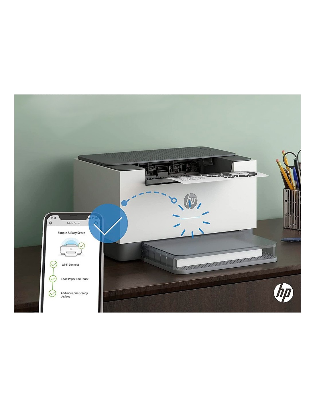 Una impresora láser monocromo súper compacta con la impresión a doble caramás rápida de su categoría y la aplicación HP Smart que ahorra tiempola c onectividad Wi-Fi de doble banda con función de restablecimiento automáticot todo ello con una impresora láser compacta.
