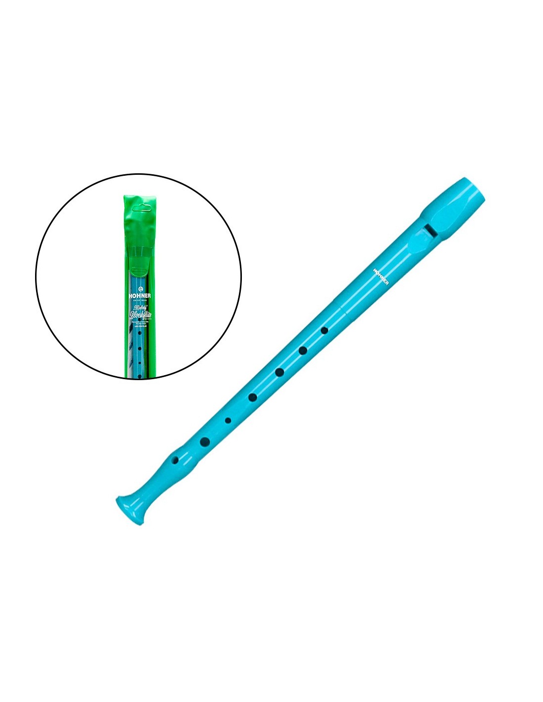 FLAUTA HOHNER 9508 COLOR CELESTE FUNDA VERDE Y TRANSPARENTE