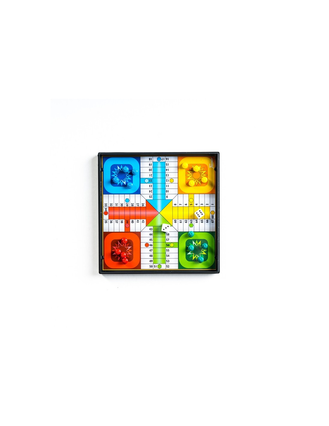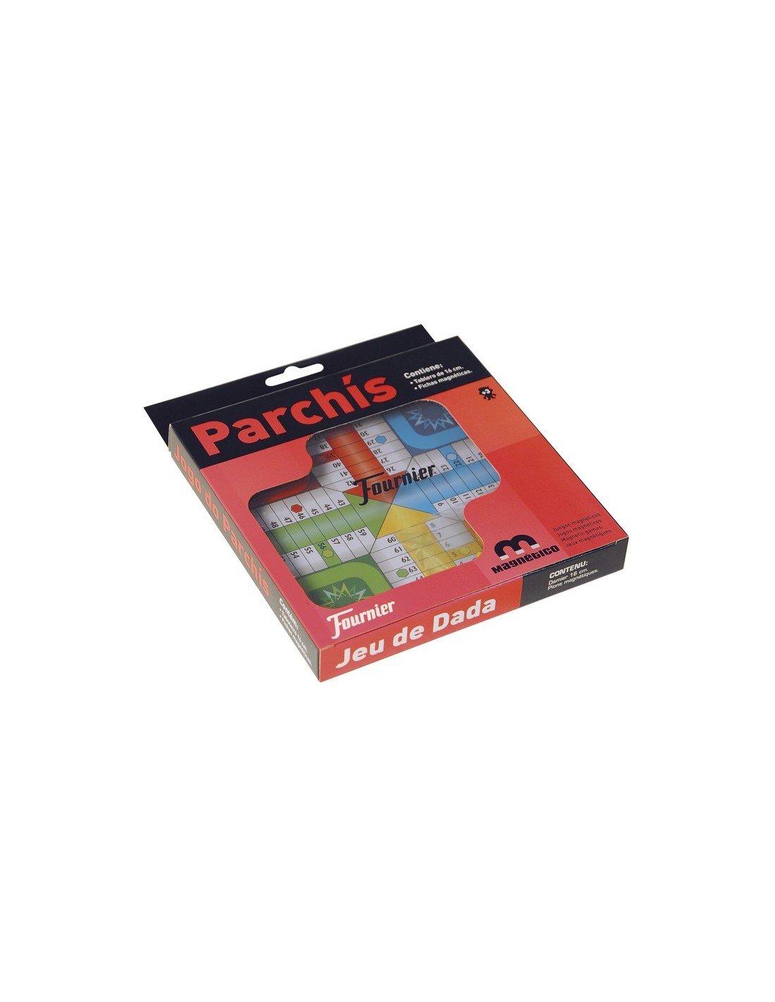 Juego de parchís para 4 jugadores. Contiene tablero, 4 cubiletes, 4 dados y 16 fichas magnéticas. Medidas: 160 x 160 mm.