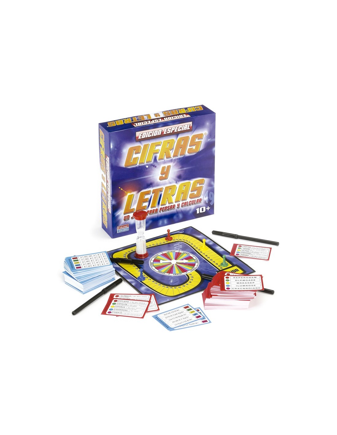 Cifras y letras un juego para pensar y calcular. Es un juego didáctico-cultural hecho para refrescar y agilizar el idioma castellano y las reglas básicas de matemáticas. A partir de 10 años. 2 o más jugadores. Medidas: 26 x 26 x 6 cm.