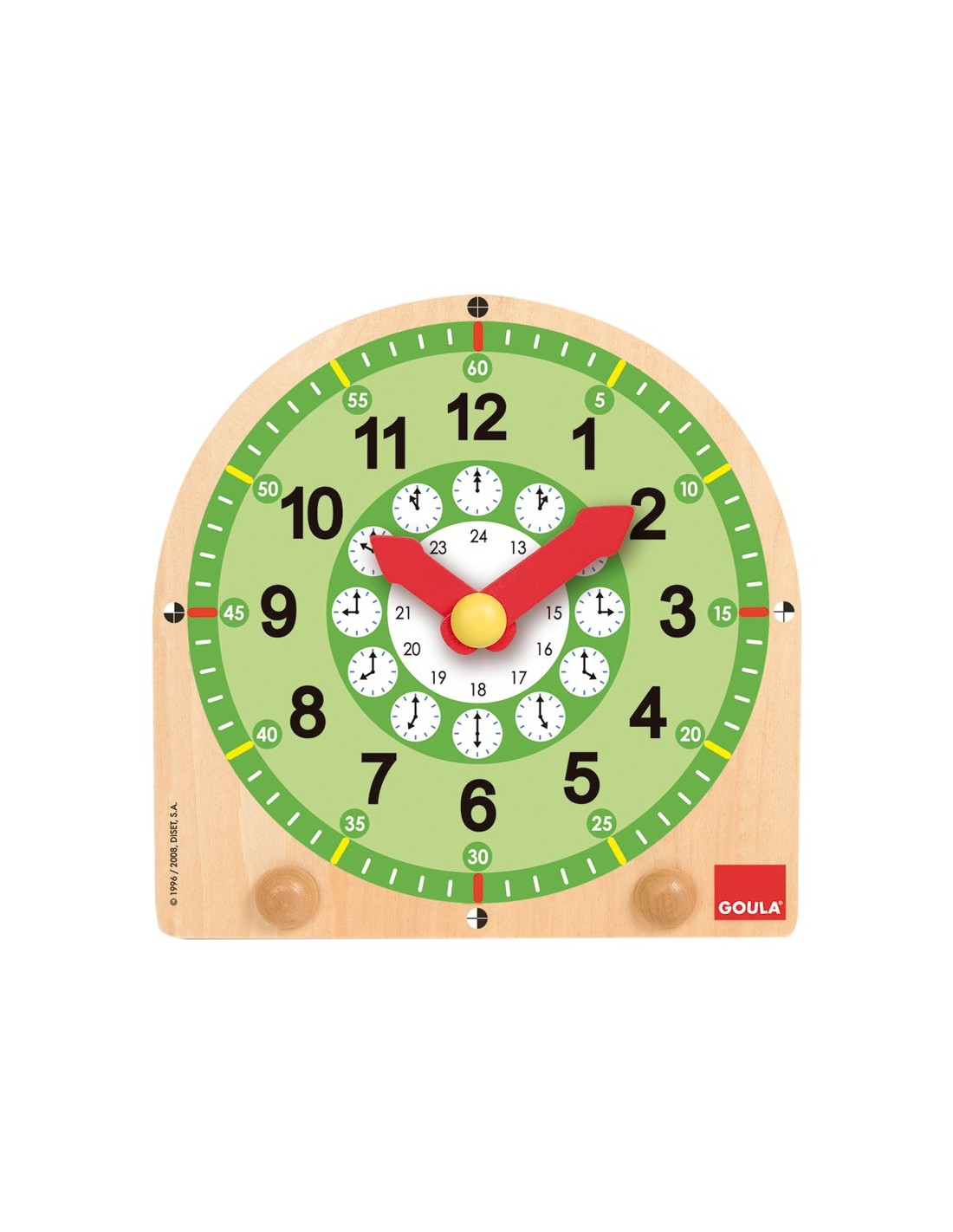 RELOJ DE MADERA ESCOLAR PARA APRENDER LAS HORAS Y MINUTOS. A PARTIR DE 2 AN?OS. INCLUYE PERCHERO. MEDIDAS: 26,5 X 26,5 X 4 CM.