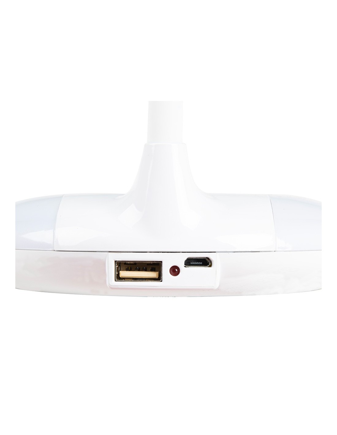 Lámpara infantil Liderpapel. Fabricada en ABS. Potencia de 5W. Lámpara inalámbrica con batería recargable. Diseñada para iluminar sin dañar la visión de los niños. Cuenta con leds de diferentes colores que permiten adaptarse a cualquier situación: descansar, leer o estudiar. El brazo orientable para ajustar la difusión de la luz. Interruptor táctil. Ahorro de energía.Cable para cargar incluido. Color blanco. Medidas: 133x209x137 mm.