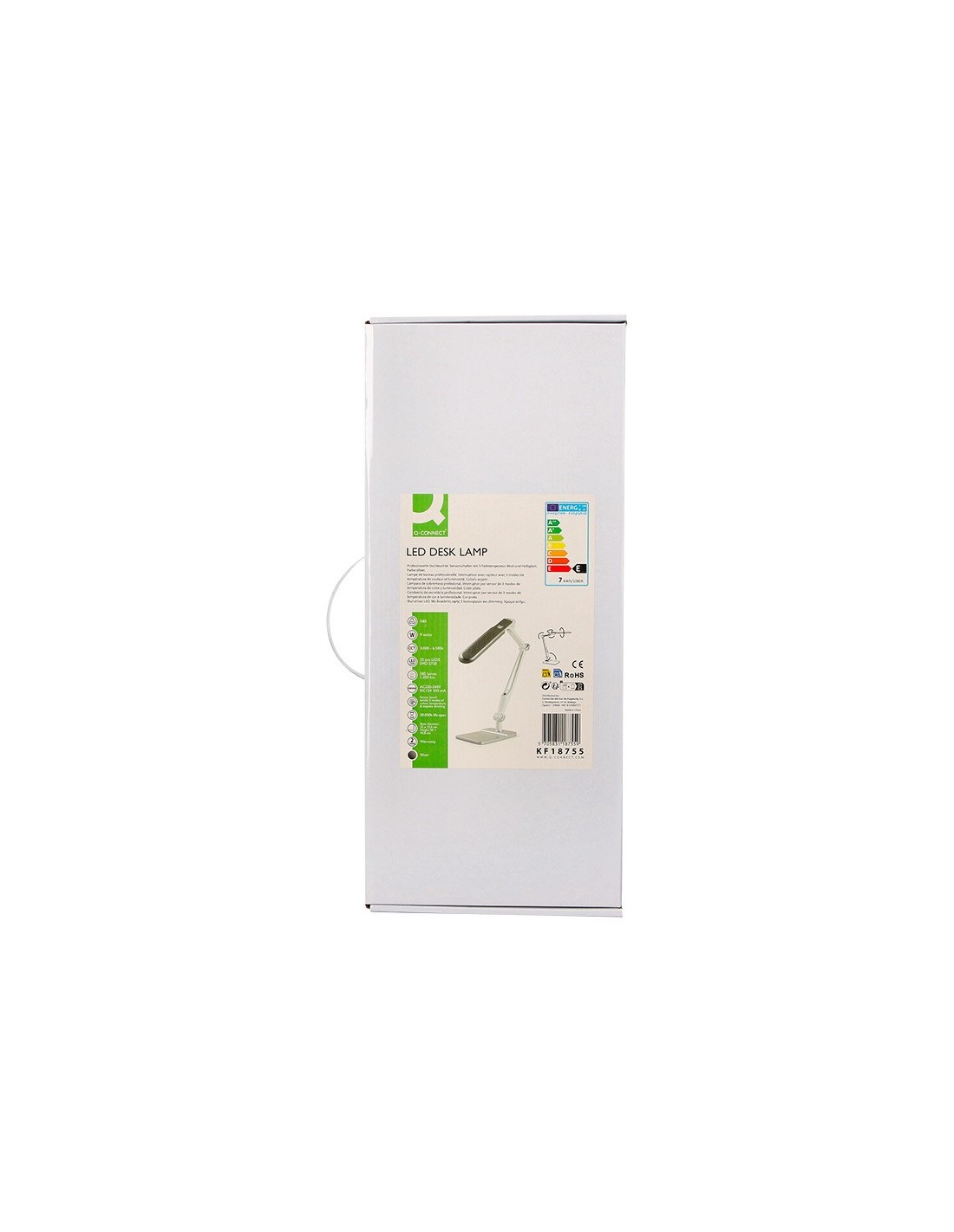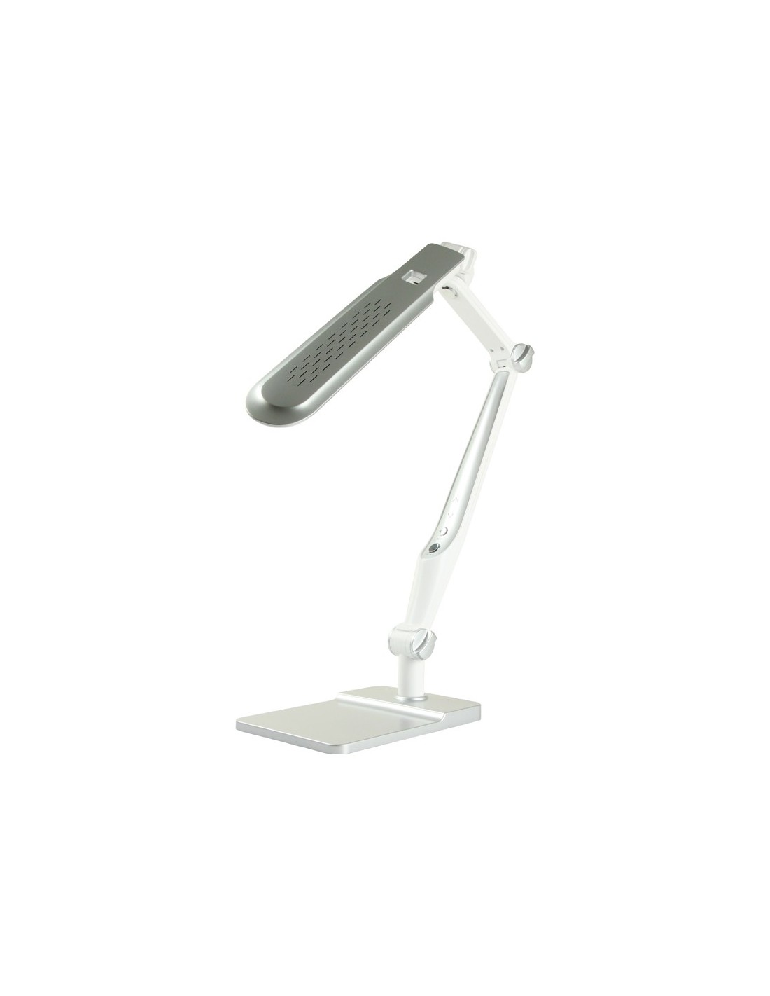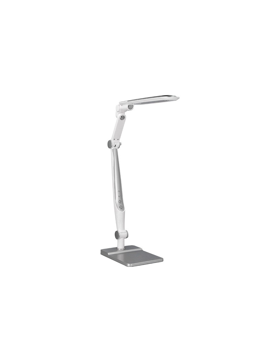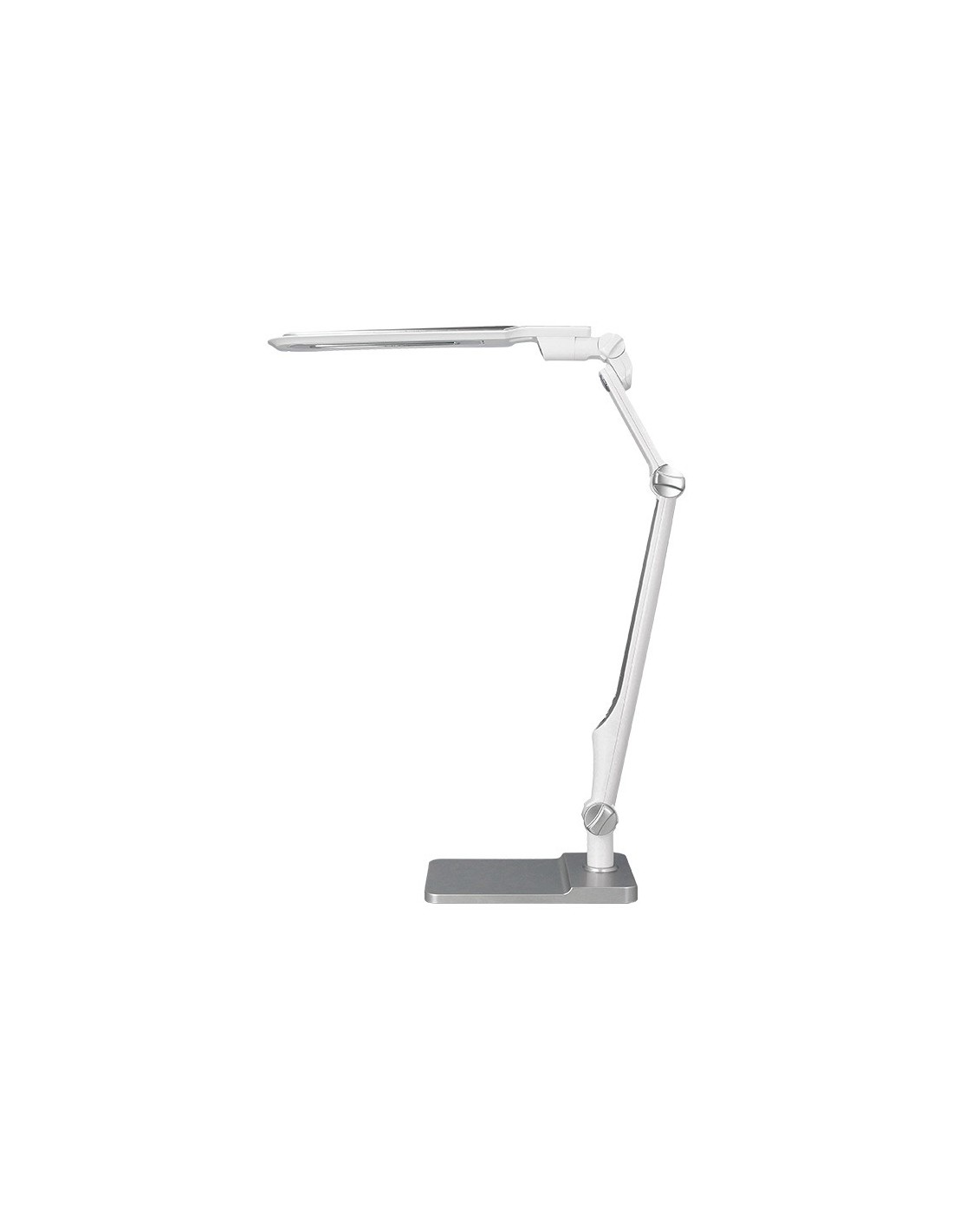 Lámpara de escritorio Q-Connect. Fabricada en ABS. Potencia de 9W, 32 LEDsy un flujo luminoso de 550 lúmenes. Temperatura de Color: (CCT) ajustable : 3000K (luz cálida), 4300K (luz neutra) y 6300K (luz fría), con un índicede reproducción cromática (CRI) de 80 para una iluminación precisa. Senso r táctil para encendido/apagado y cambio de Color:. Brazo y base oscilantes con 3 articulaciones que permiten orientar la luz con precisión. Vida útil estimada de 20.000 horas. Cable de 130 mm. Certificados CE y RoHS. Medidas: 350x511x358 mm. Peso: 1.400 gramos. Color: plateado.