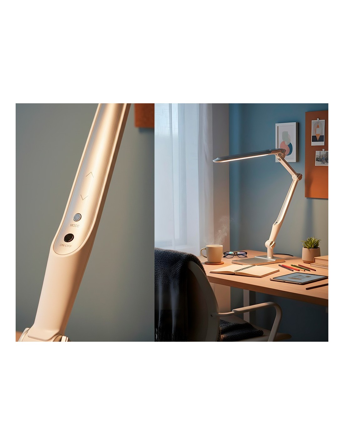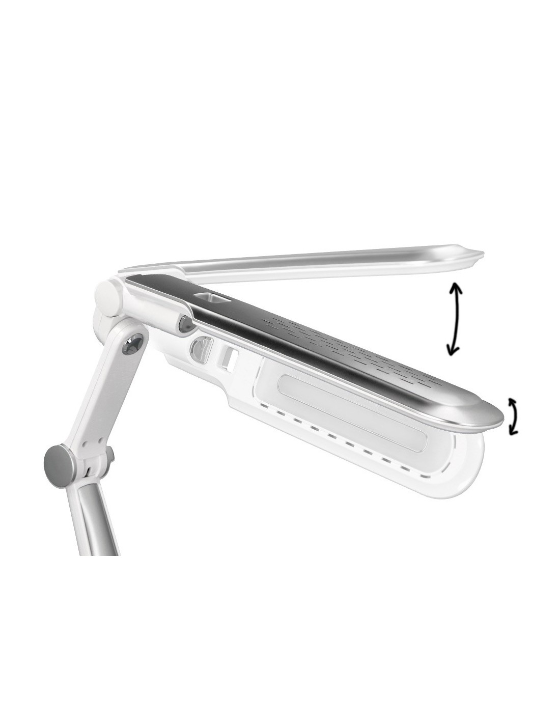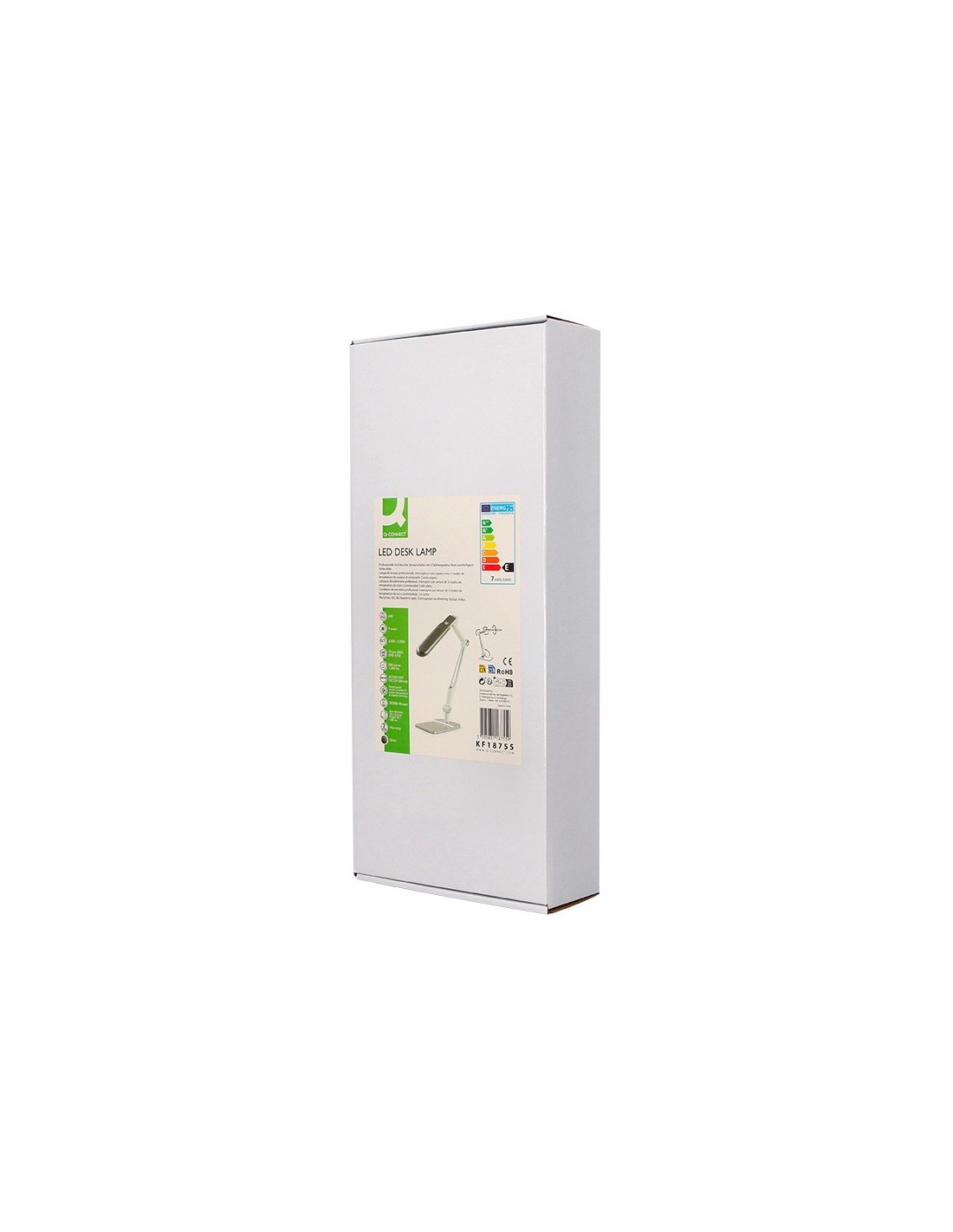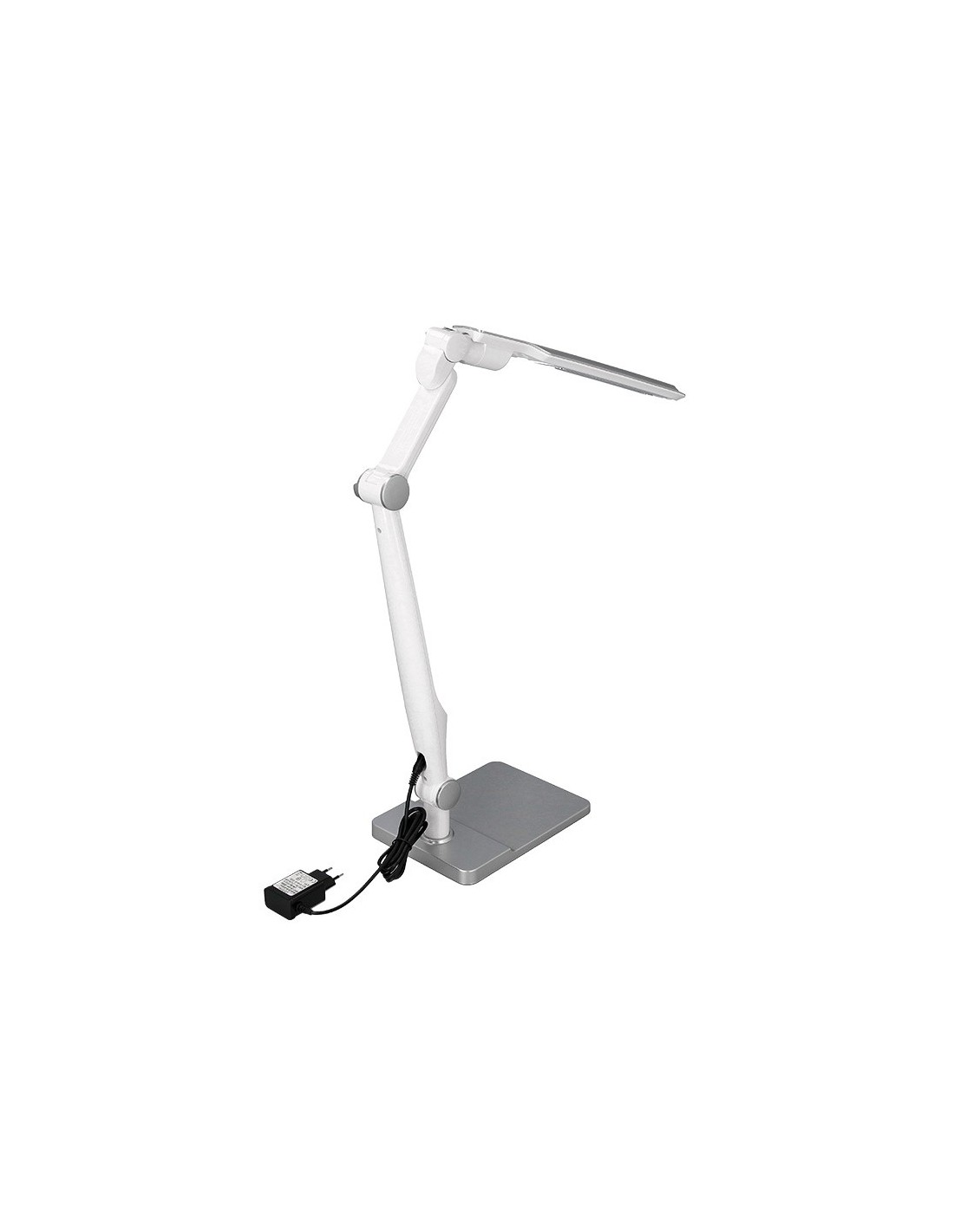 Lámpara de escritorio Q-Connect. Fabricada en ABS. Potencia de 9W, 32 LEDsy un flujo luminoso de 550 lúmenes. Temperatura de Color: (CCT) ajustable : 3000K (luz cálida), 4300K (luz neutra) y 6300K (luz fría), con un índicede reproducción cromática (CRI) de 80 para una iluminación precisa. Senso r táctil para encendido/apagado y cambio de Color:. Brazo y base oscilantes con 3 articulaciones que permiten orientar la luz con precisión. Vida útil estimada de 20.000 horas. Cable de 130 mm. Certificados CE y RoHS. Medidas: 350x511x358 mm. Peso: 1.400 gramos. Color: plateado.