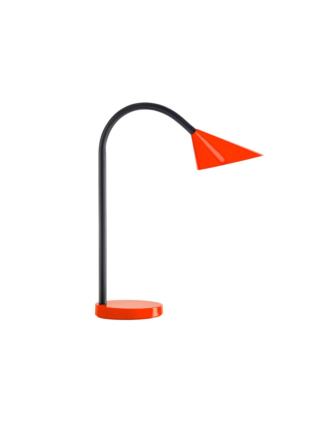 Lámpara de escritorio UNILUX. Fabricada en ABS, caucho y metal. Potencia de 6W con un único LED que proporciona un flujo luminoso de 625 lúmenes. Temperatura de color de 3.000K (luz cálida), con un índice de reproducción cromática (CRI) de 84 para una representación adecuada de los colores. Brazo flexible con una articulación que permite ajustar el ángulo de iluminación. Incluye cable de alimentación con una longitud de 1.800 mm y enchufe estándar. Vida útil estimada de 20.000 horas. Medidas: 140x450x300 mm. Color rojo.